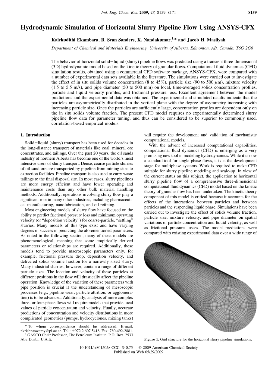 Kalekudithi Ekambara, R. Sean Sanders, K. Nandakumar, Jacob H. Masliyah