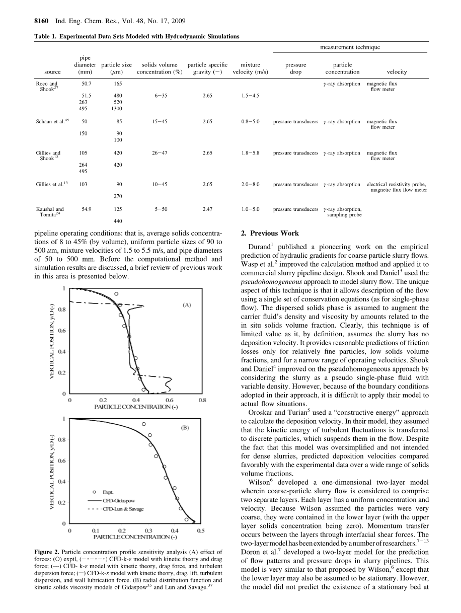 大多数浆流的工程模型集中在预测粗颗粒,“沉降”浆液的摩擦压力损失和最小操作速度(或“沉积速度”)的能力。有很多这种类型的模型在预测上述参数方面具有不同程度的成功。如下所述,很多这样的模型是具有现象性的,意味着需要一些经验导出的参数或关系。另外,这些模型倾向于仅提供宏观参数,例如,对于窄尺寸浆料的摩擦压降,沉积速度和输送固体体积分数。然而,许多工业浆料包含一系列不同的粒径。这些颗粒在流体中不同位置和速度都将严重影响管道操作。如果要提高对介观过程(例如,管道磨损,颗粒磨损或集聚)的理解,那么知道这些参数随管位置的变化是关键的。此外,更复杂的三相或四相流的分析将需要提供颗粒浓度和速度的局部值的模型。最后,在更复杂的几何形状(泵,水力旋流器,混合罐)中对浓度和速度分布的准确预测将需要发展和验证机械计算模型。