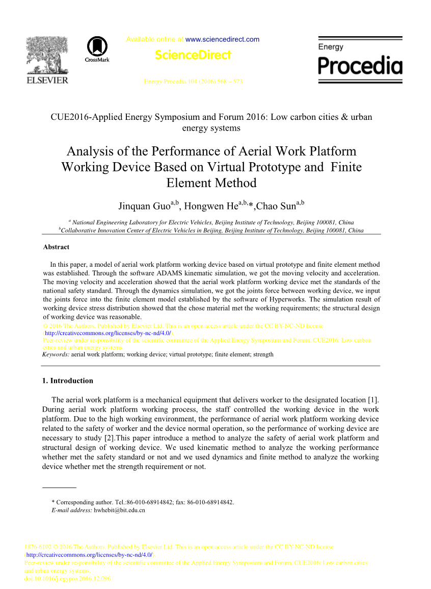 关键词:高空作业平台;工作装置;虚拟样机;有限元;强度