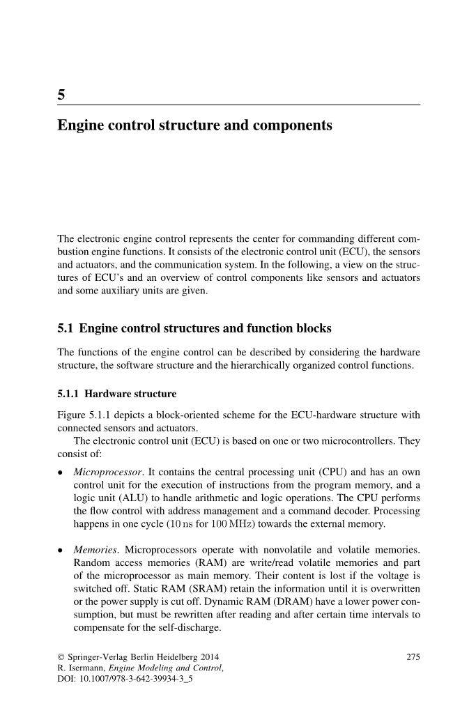发动机电子控制代表了命令不同燃烧功能的中心。它由电子控制元件(ECU)、传感器、执行器、和通讯系统组成。下文中介绍了ECU的结构和控制组件的综述如给出的传感器、执行器和一些辅助单元。