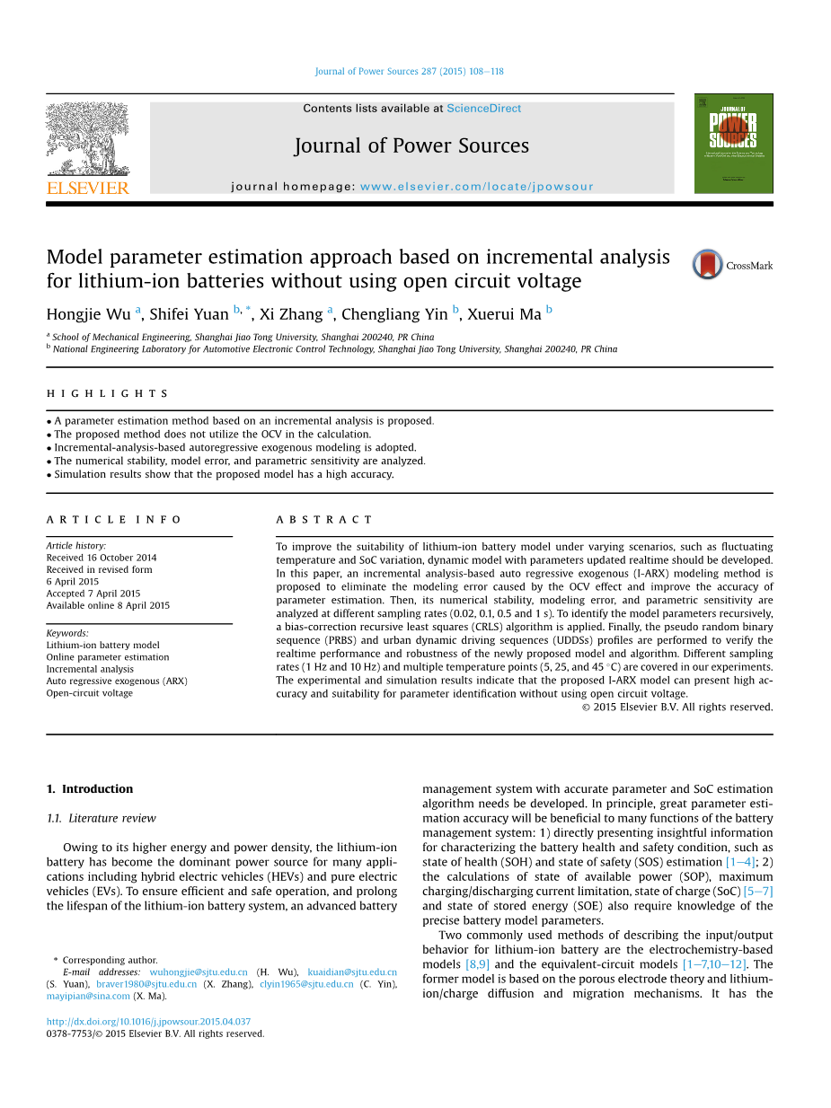 由于其较高的能量和功率密度,锂离子电池电池已成为许多应用的主要动力源包括混合动力电动汽车(HEV)和纯电动汽车车辆(EV),为确保高效安全运行,延长锂离子电池系统的使用寿命,需要开发具有精确参数和SOC估算算法的先进电池管理系统。原则上,很好的参数估计精度将对电池管理系统的许多功能有益:1)直接呈现用于表征电池健康和安全状况的有见识的信息,例如健康状态(SOH)和安全状态(SOS)估计; 2)可用功率状态(SOP),最大充电/放电电流限制,充电状态(SOC)和存储能量状态(SOE)的计算还需要知道精确的电池模型参数。