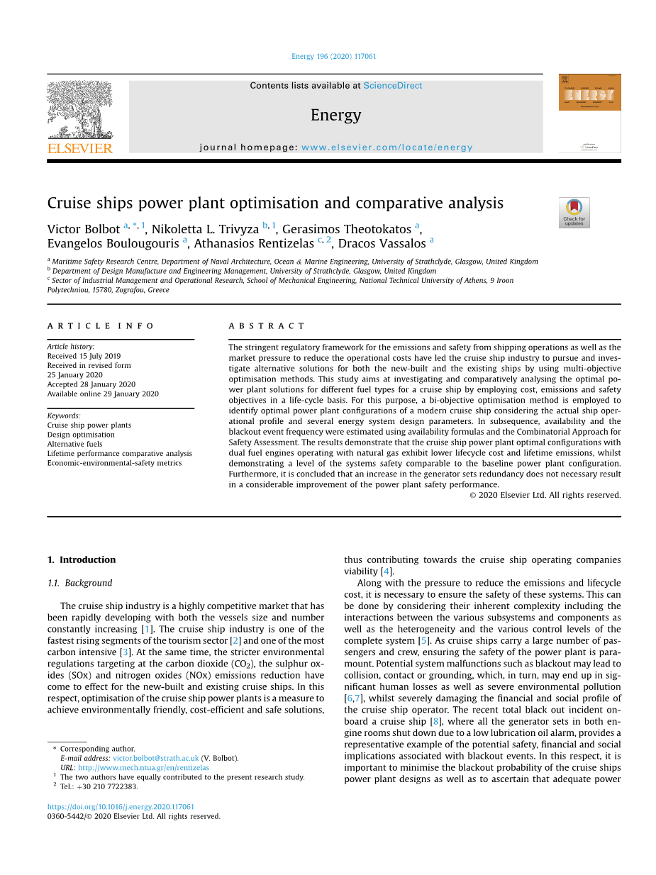 游轮发电厂优化和比较分析外文翻译资料 2023-02-14 10:25:38 英语原文共 22 页,剩余内容已隐藏,支付完成后下载完整资料 英语译文共 13 页,剩余内容已隐藏,支付完成后下载完整资料 资料编号:[235298],资料为PDF文档或Word文档,PDF文档可免费转换为Word 原文和译文剩余内容已隐藏,您需要先支付 30元 才能查看原文和译文全部内容!立即支付 发小红书推广免费获取该资料资格。点击链接进入获取推广文案即可: Ai一键组稿 | 降AI率 | 降重复率 | 论文一键排版 PREVIOUS NEXT 您可能感兴趣的文章 9000吨供油船机舱设备选型与热平衡分析外文翻译资料 沿海高速客船机舱设备选型及经济性分析外文翻译资料 海.上溢油应急技术外文翻译资料 可变压缩比柴油发动机的效率和生态特征外文翻译资料 高速船 第4部分 船舶系统和设备外文翻译资料 14平衡常数 外文翻译资料 敞水中空化螺旋桨和喷嘴式全 回转推进器的CFD研究外文翻译资料 生物燃料及其二元(柴油-生物柴油)和三元(乙醇生物柴 油-柴油)混合燃料在内燃机减排上的作用外文翻译资料 游轮发电厂优化和比较分析外文翻译资料 内燃机最优放热率计算外文翻译资料