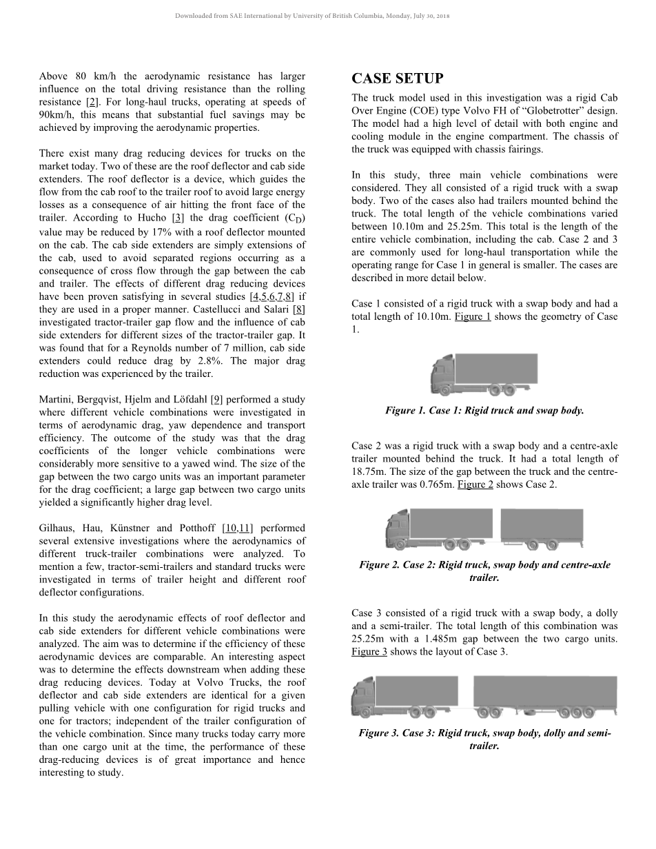 Gilhaus,Hau,Kuuml;nstner和Potthoff[10,11]进行了几项广泛的调查,分析了不同卡车-拖车组合的空气动力学特性。比如,牵引半拖车和标准卡车在拖车高度和不同的导流罩配置方面进行了调查。