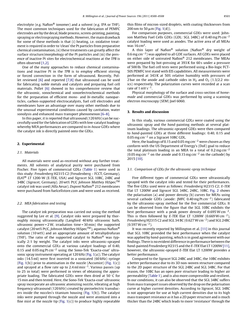 在本文中,据报道,超声波(120kHz)可以成功地用于制造具有低催化剂负载量的GDE,从而将MEA性能与内部GDE进行比较,其中催化剂油墨直接涂在GDL上。