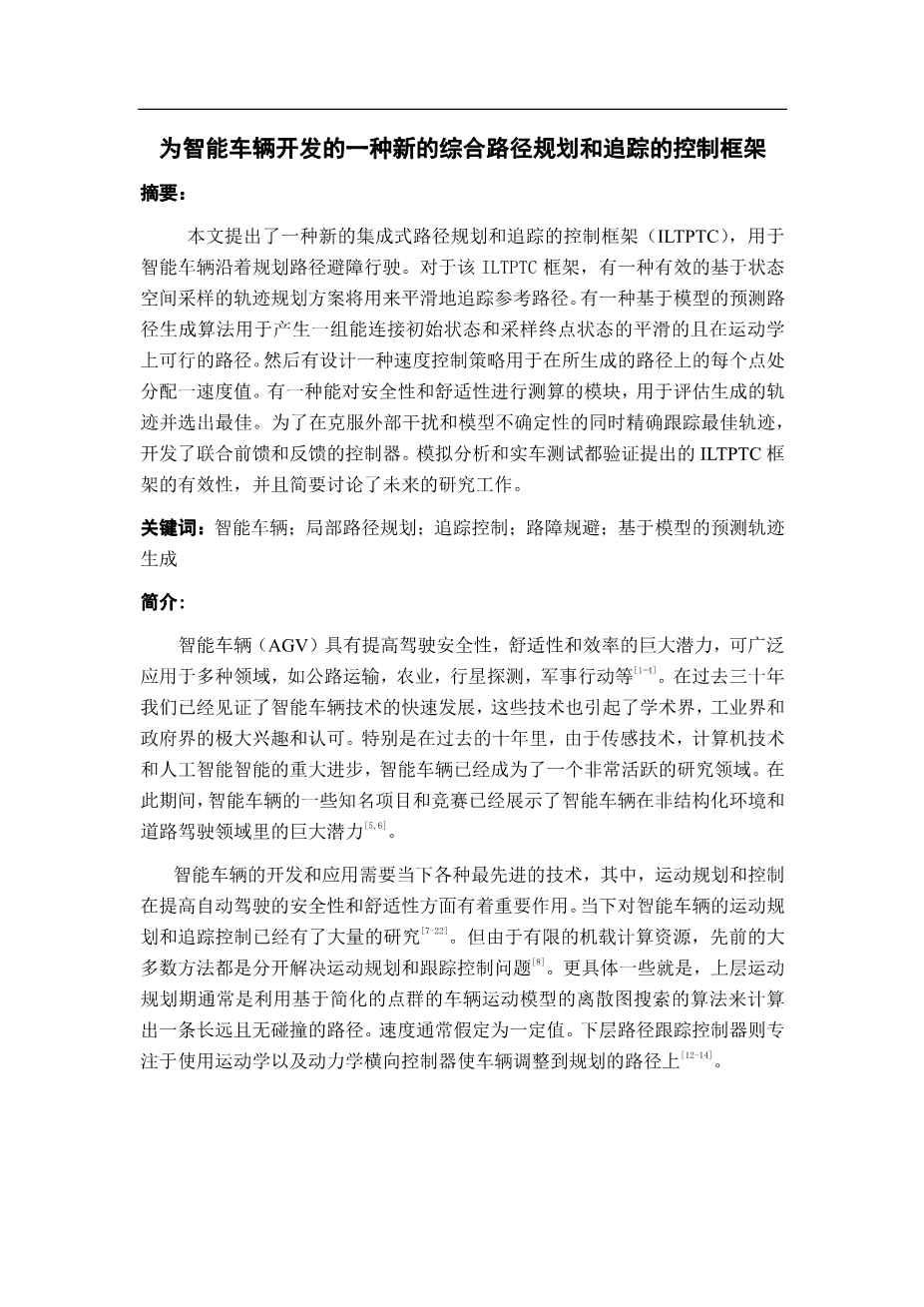无人驾驶汽车路径跟踪控制设计与研究外文翻译资料