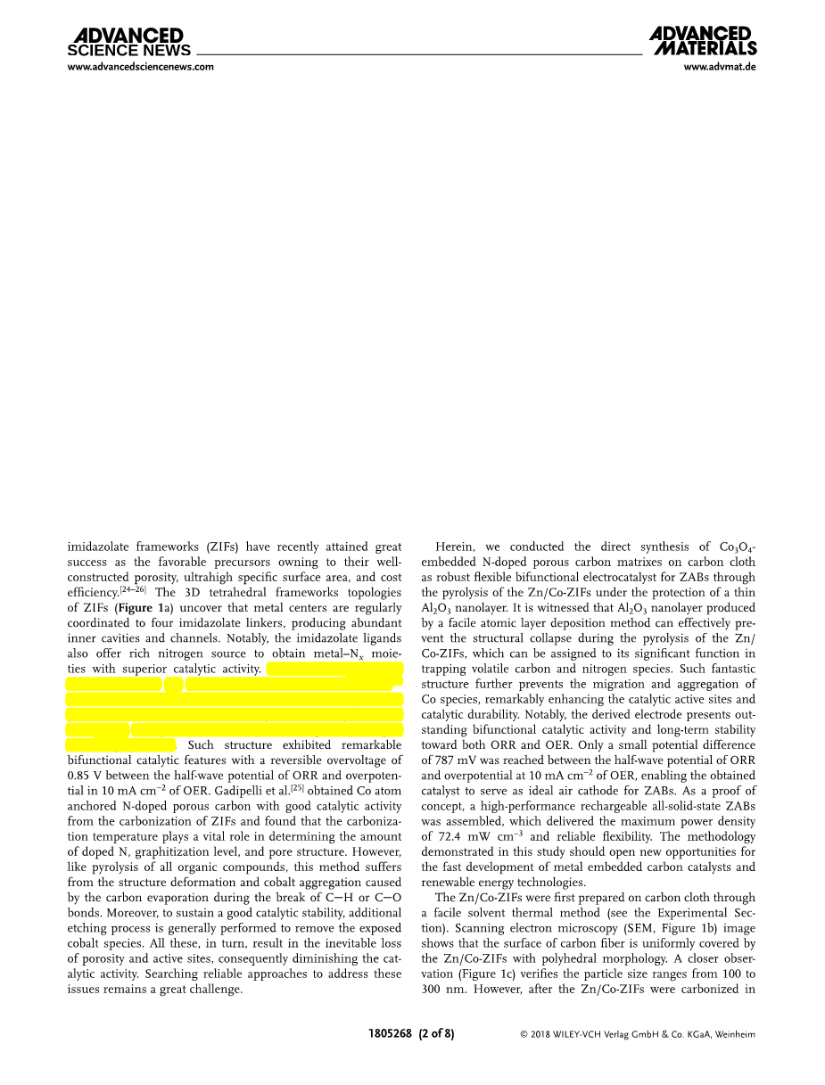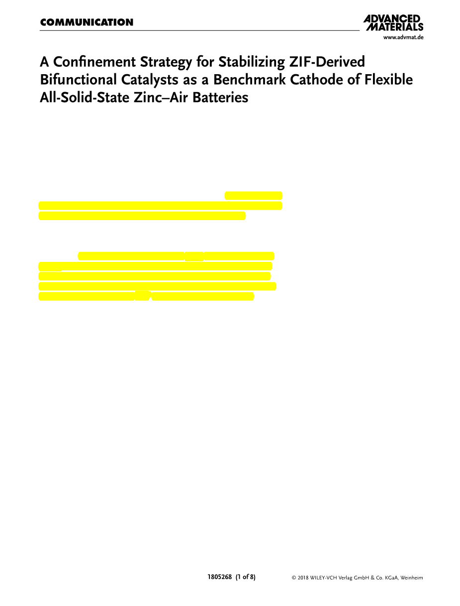 用于稳定ZIF衍生的双功能催化剂作为柔性全固态锌空气电池基准阴极的限制策略