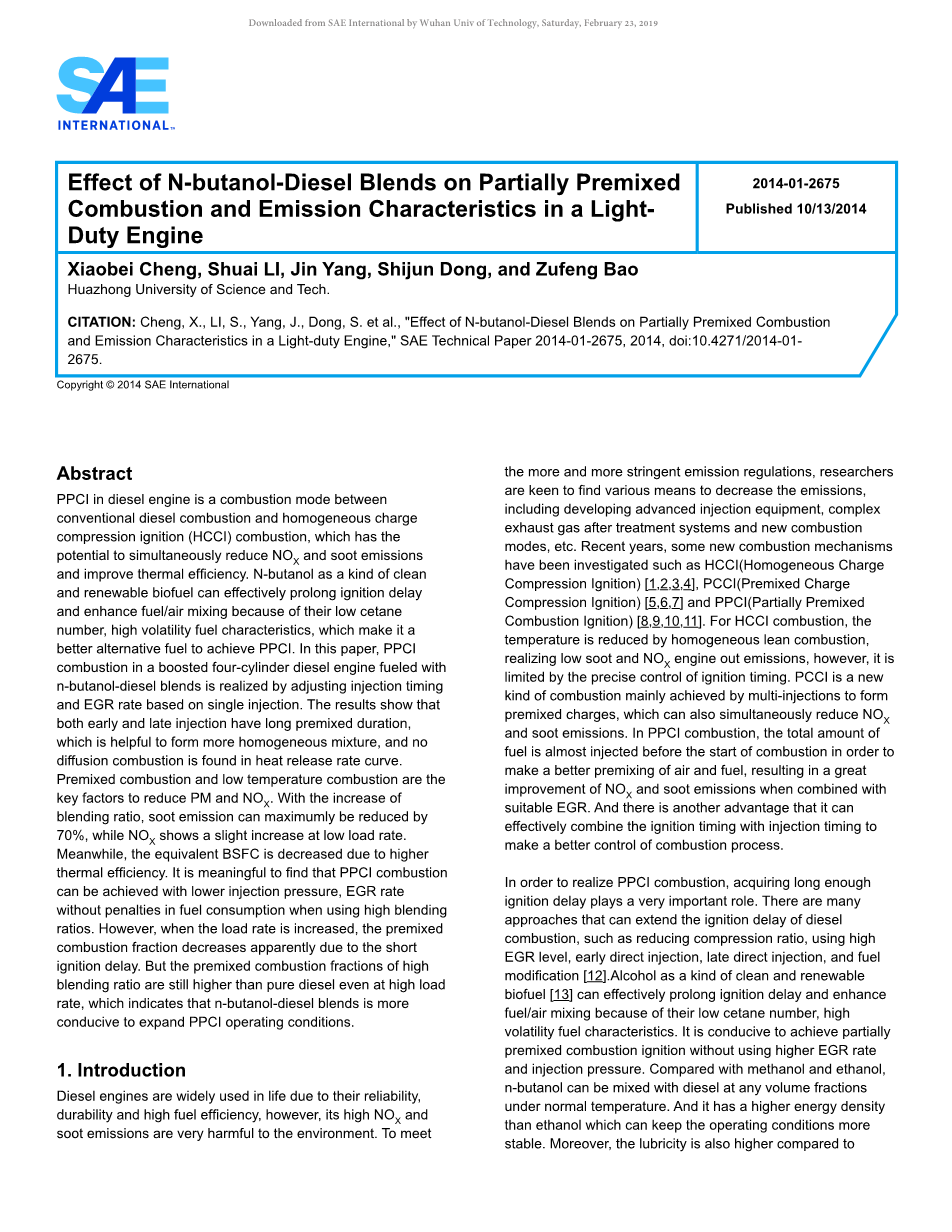 但是燃料的混合并不均匀。在本文中,基于单次喷射实现了由正丁醇-柴油混合物作为燃料的增压四缸轻型柴油发动机中的PPCI燃烧。采用的策略主要集中在喷射开始,采用合适的喷射压力和适当的EGR率,以实现更长的着火延迟。通过研究燃料的特性,如十六烷值,燃料中的氧含量对PPCI燃烧和排放性能的影响,以减少NOx和烟尘排放。
