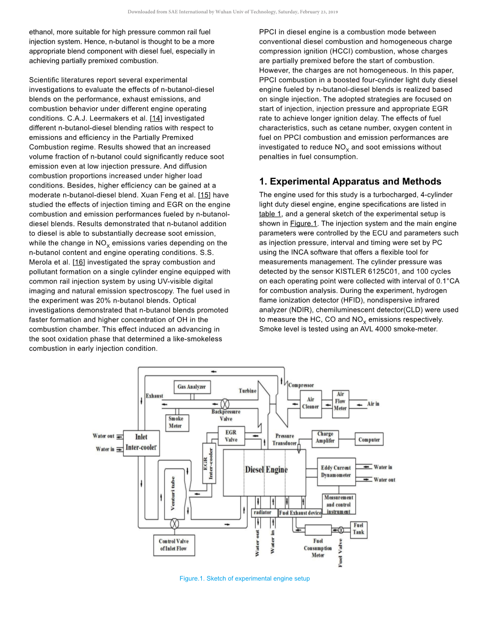 实验中使用的燃料是20%正丁醇混合物。光学研究表明,正丁醇混合物促进了燃烧室中更快的形成和更高的OH浓度。这种效应引起烟灰氧化阶段的推进,该阶段在早期注入条件下确定了类似无烟燃烧。