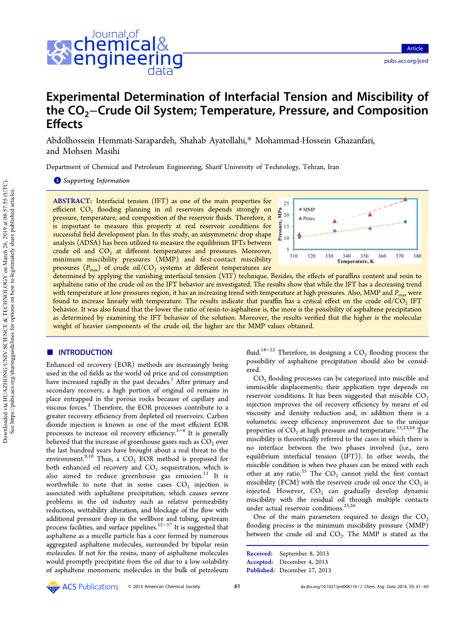 Abdolhossein Hemmati-Sarapardeh, Shahab Ayatollahi,* Mohammad-Hossein Ghazanfari,and Mohsen Masihi