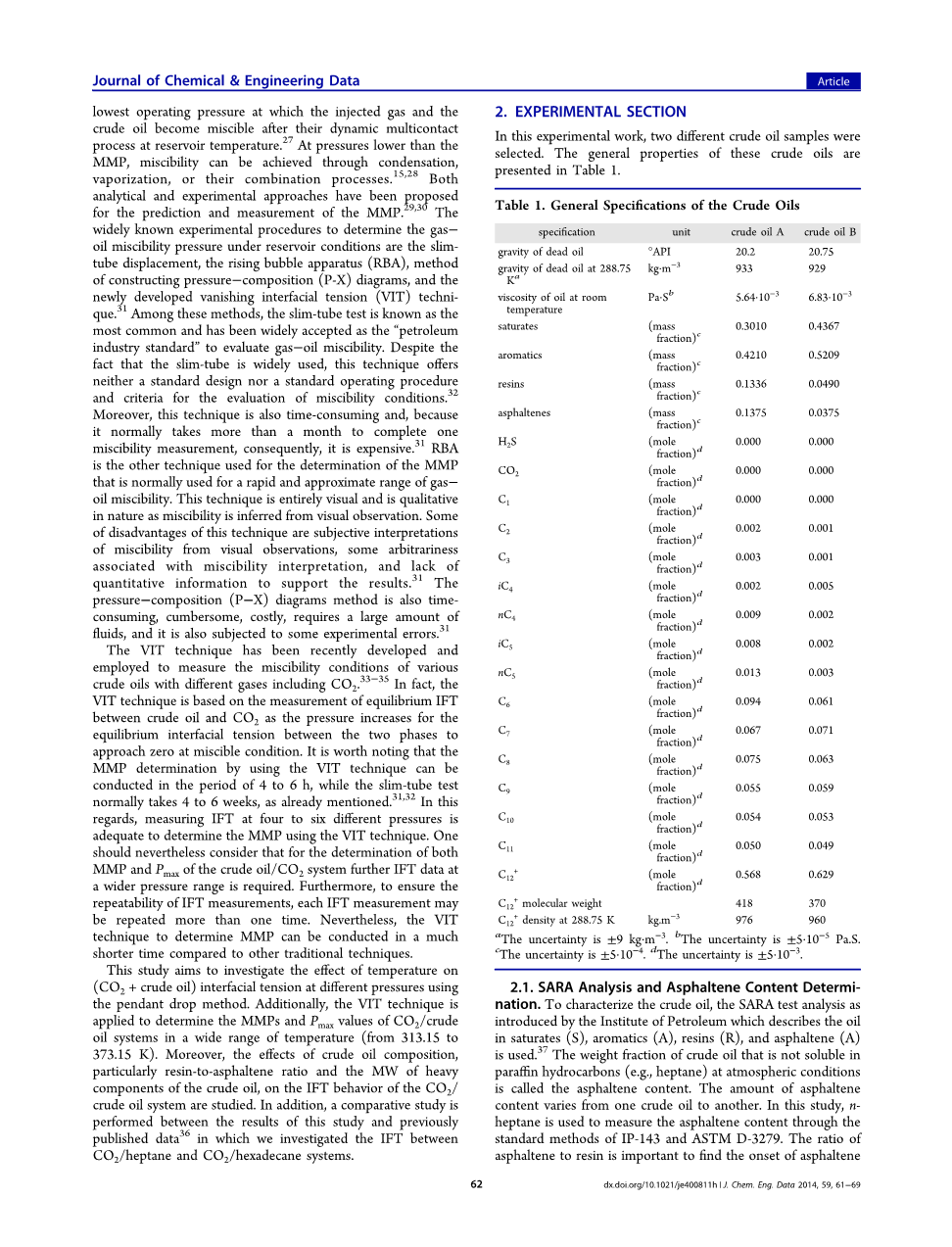 在该实验工作中,选择了两种不同的原油样品。这些原油的一般性质列于表1中。