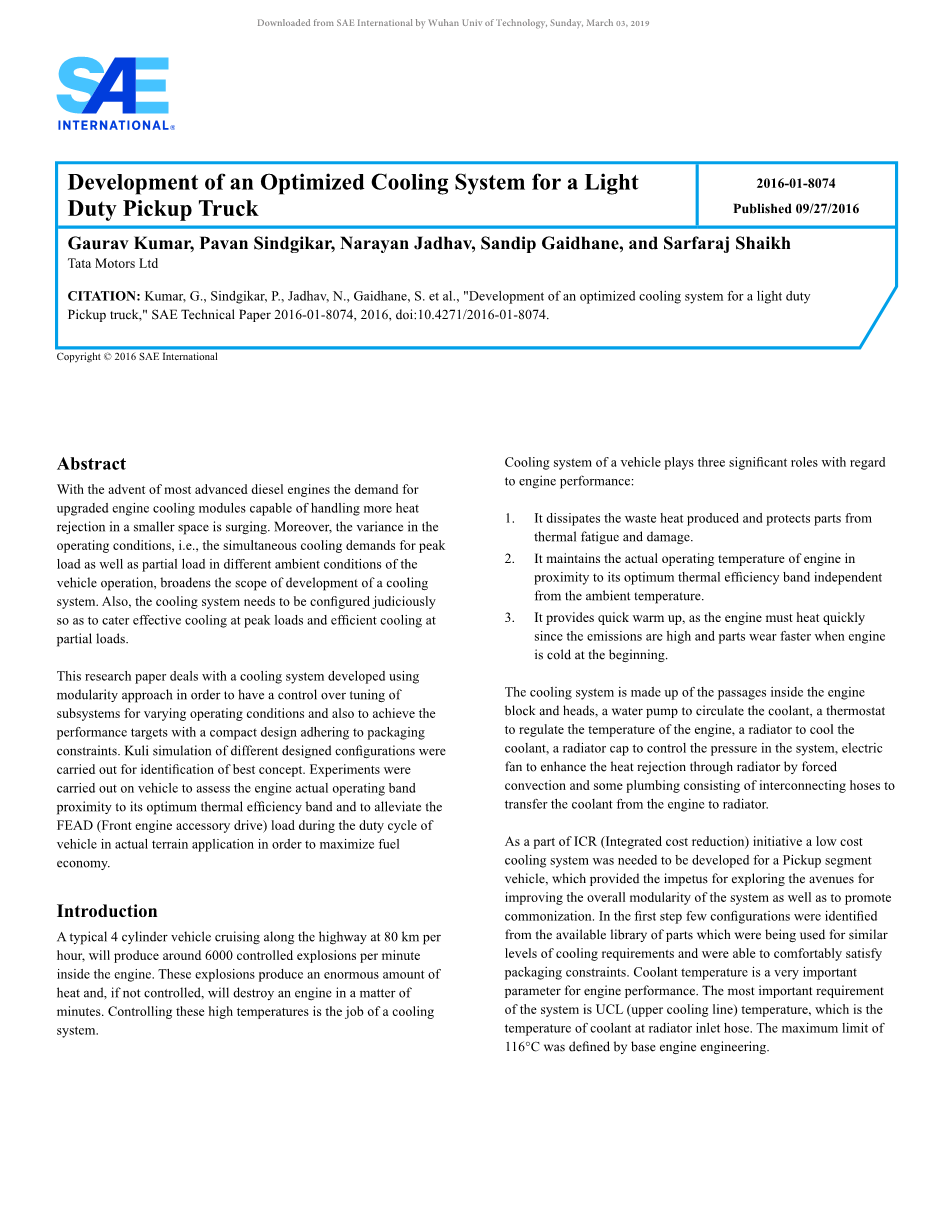 轻型皮卡车冷却系统优化设计