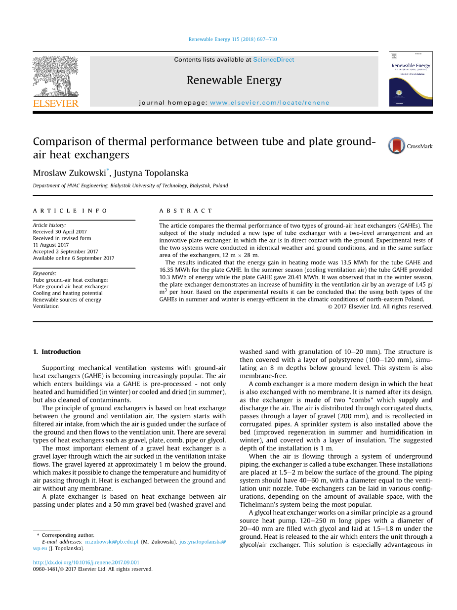 本文的最初目的是假设管道和板式两种类型的地下土壤-空气换热器在相同的天气和地面条件下运行,比较两种系统与能量增益的关系。本文的第一个研究对象是一种新型的管式换热器-两层布置的管道系统,两层管道相距0.5m,关于类似的研究报告尚未在文献中发表。第二个对象是获得波兰专利的板式换热器的创新结构,其特点是通风空气与地面直接接触。我们找不到与此相同的关于这类系统的研究论文。