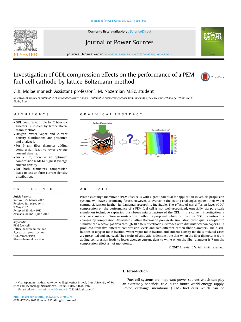关键词:质子交换膜燃料电池,格子玻尔兹曼法,随机重组,气体扩散层压力,电化学反应。