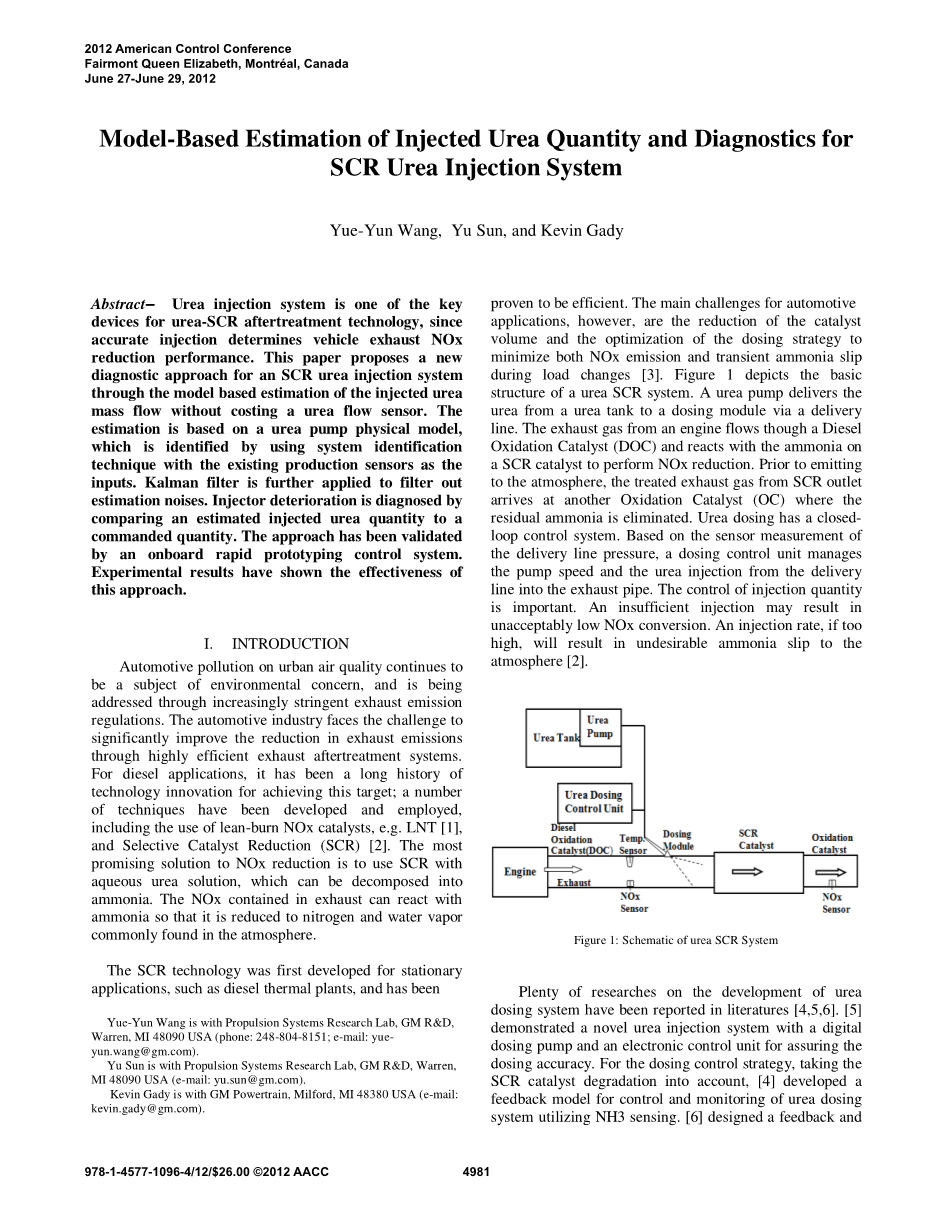 基于模型的尿素喷射量估计和SCR尿素喷射系统诊断外文翻译资料