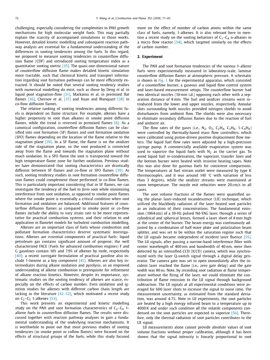 对冲扩散火焰中各种1-烯烃燃料的碳烟倾向对比研究。