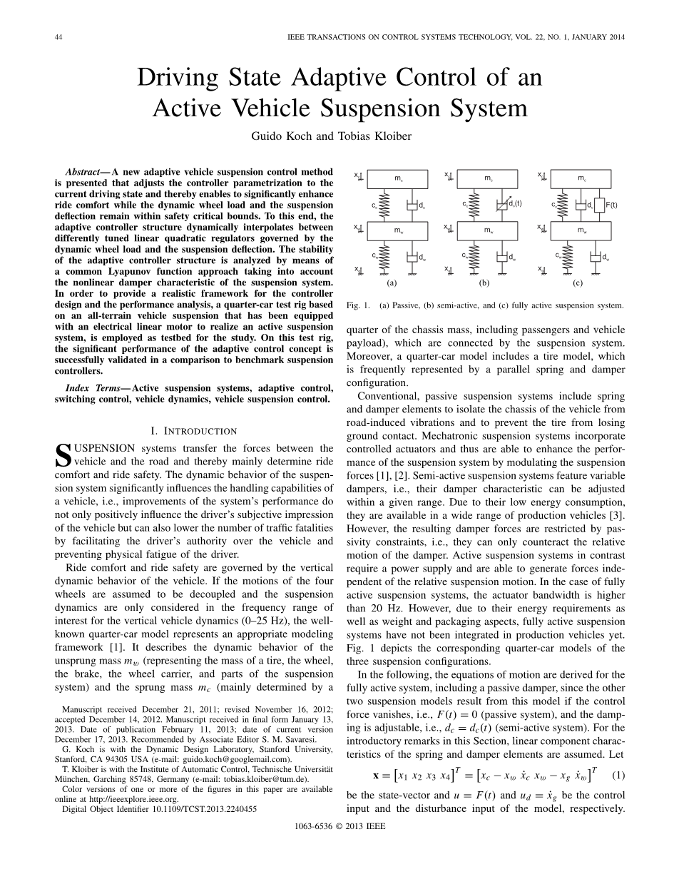 手稿于2011年12月21日收到; 2012年11月16日修订; 2012年12月14日接受。2013年1月13日以最终形式收到手稿。发布日期2013年2月11日; 当前版本的日期2013年12月17日。副编辑S. M. Savaresi推荐。G. Koch与斯坦福大学动态设计实验室,美国加利福尼亚州斯坦福94305(电子邮件:guido.koch@googlemail.com)。