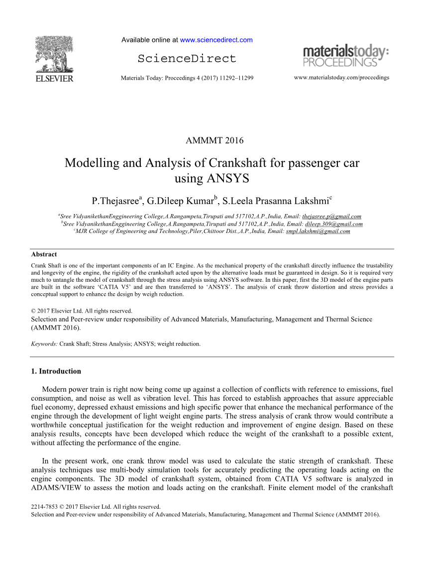 11294 P.Thejasree/ 今日材料: 期刊 4 (2017) 11292–11299