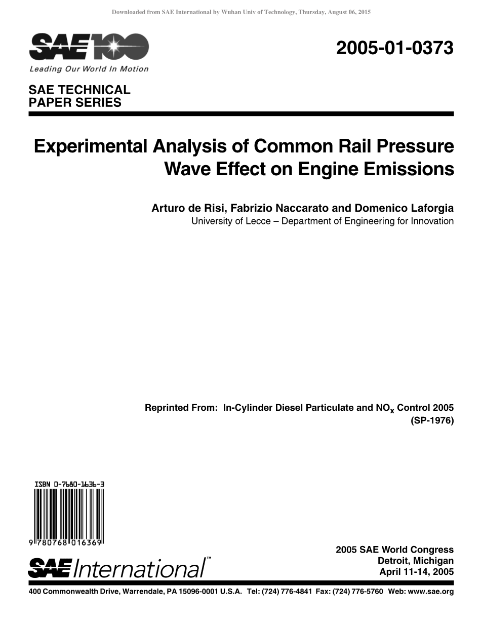 【摘要】:在本课题中,研究了共轨喷射系统管道中传播的压力波对发动机排放的影响。由喷油器关闭产生的压力波的特点在于其幅度可以轻易的超过10MPa。当采用多喷射策略时,这种波动会严重影响后续喷射的燃油输送率,从而影响排放水平和燃油的消耗。