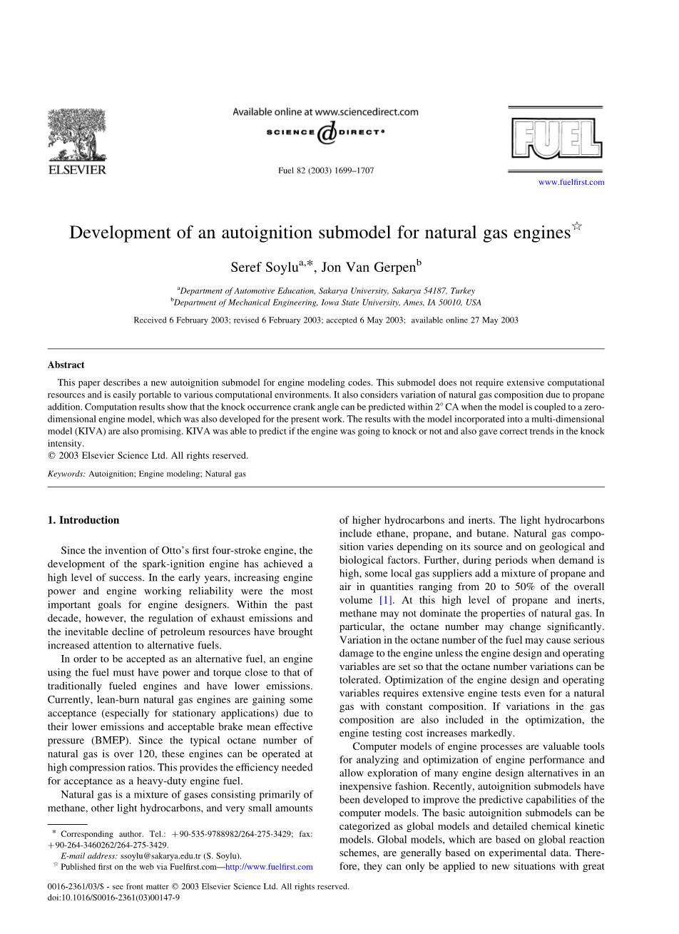 从文献中可以看出,单个循环压力的历来与KOCA密切相关。因此,通过使用基于气缸压力历史的全局模型,可以从气缸压力数据预测KOCA。因此,通过使用基于气缸历来压力的全局模型,可以根据气缸压力数据预测KOCA。如果根据发动机的实验数据开发全局模型,则该模型可用于具有类似设计的新型发动机,并且具有预测性。在内燃机发展的新形势下,燃烧过程的根本改变并不常见。全球自燃模型最重要的参数是历来末端气体的压力和温度,这些历史数据显示了大多数SI发动机的相似性。