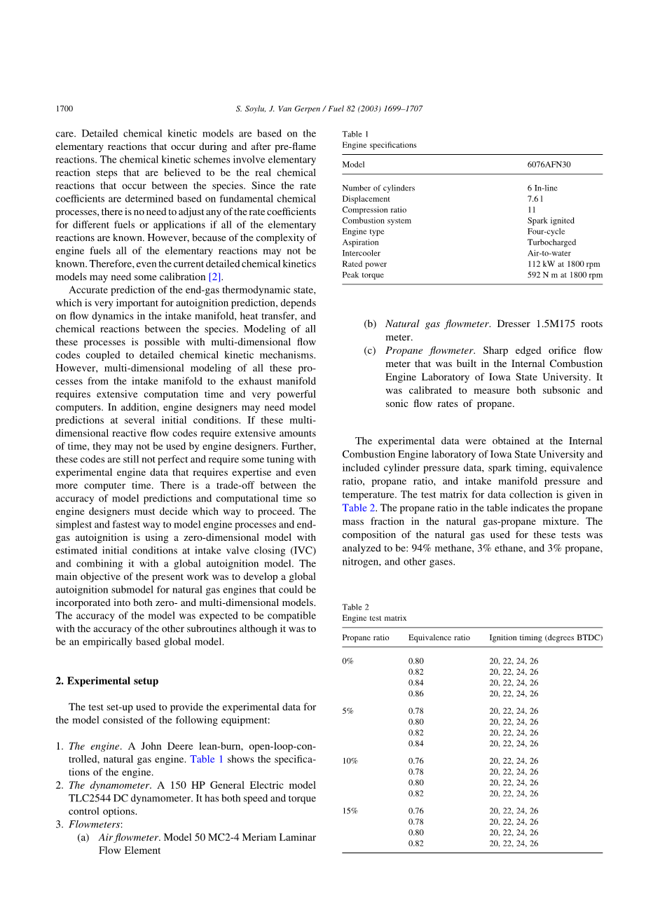 自奥托第一台四冲程发动机发明以来,火花点火发动机的研发取得了很高的成功。在早期,提高发动机功率和发动机工作可靠性是发动机设计人员最重要的目标。然而,在过去的十年,废气排放的规定和石油资源不可避免的枯竭已经引起对替代燃料的更多关注。使用替代燃料的发动机必须具有接近传统燃料发动机的动力和扭矩,并具有较低的排放。目前,稀燃天然气发动机由于其较低的排放和可接受的平均有效压力(BMEP)而获得了一些认可(特别是对于固定应用)。由于天然气的辛烷值通常超过120,这些发动机可以在高压缩比下运行。这具备了重型发动机燃料所需的效率。天然气是以甲烷为主要成分,其他轻质烃,少量高级烃和惰性气体组成的气体混合物。轻烃包括乙烷,丙烷和丁烷。天然气成分因其来源以及地质和生物因素而异。此外,在需求高涨期间,一些当地天然气供应商添加丙烷和空气的混合物,其量占总体积的20%至50%。在丙烷和惰性气体高含量的情况下,甲烷可能不会决定天然气的性质。辛烷值可能会发生显着变化。燃油辛烷值的变化可能会对发动机造成严重损坏,除非发动机设计和运行参数可以容许辛烷值变化。发动机设计和运行变量的优化需要大量的发动机测试,即使是成分恒定的天然气。如果优化中还包括气体成分的变化,则发动机测试成本显着增加。发动机过程的计算机模型是分析和优化发动机性能的有价值的工具,并允许以低成本的方式研究很多设计发动机的方案。最近,开发了自燃模型来提高计算机模型的预测能力。基本的自燃子模型可以分为全局模型和详细的化学动力学模型。基于化学反应总方程式的全局模型通常基于实验数据。因此,他们很难被应用在新环境中。详细的化学动力学模型基于在预焰反应期间和之后发生的基本反应。化学动力学方案涉及的基本反应步骤被认为是物质之间发生的真实化学反应。由于速率系数是基于基本化学过程确定的,因此如果所有的基本反应都是已知的,则不需要为不同的燃料或设备调整速率系数。然而,由于发动机燃料的成分复杂,所有的基本反应可能都不知道。因此,即便是目前详细的化学动力学模型也可能需要一些校准。对自燃预测非常重要的端部气体热力学状态的准确预测取决于进气歧管中的流动动态,传热以及物质之间的化学反应。使用与详细的化学动力学机制耦合的多维流动代码可以对所有这些过程进行建模。然而,从进气歧管到排气歧管所有的这些过程的多维建模需要大量的计算时间和非常强大的计算机。另外,发动机设计师可能需要在几种初始条件下进行模型预测。如果这些多维流量代码需要大量时间,则它们可能不会被引擎设计人员使用。此外,这些代码仍然不完美,需要对实验引擎数据进行一些调整,这需要专业知识和更多的计算机时间。在模型预测的准确性和计算时间之间存在权衡,因此发动机设计者必须决定继续进行的方式。模拟发动机过程和末端气体自燃的最简单和最快速的方法是使用估计的进气门关闭时初始条件(IVC)的零维模型,并将其与全局自燃模型相结合。目前工作的主要目标是为天然气发动机开发全局自燃子模型,该子模型可以纳入零维和多维模型。模型的准确性应该会与其他子程序的准确性兼容,尽管它是基于经验的全局模型。