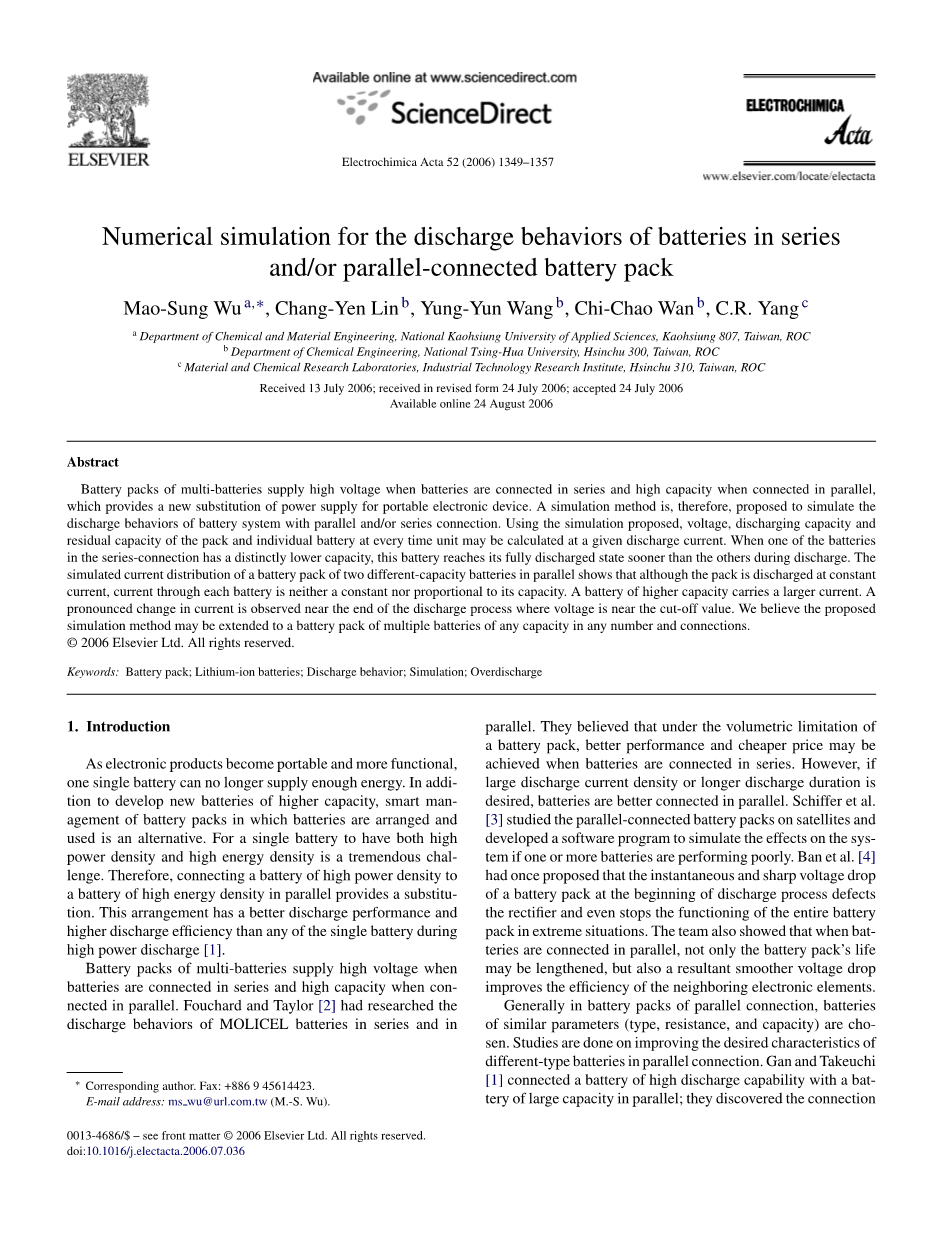 关键字:电池组 锂离子电池 放电行为 模拟 过放电