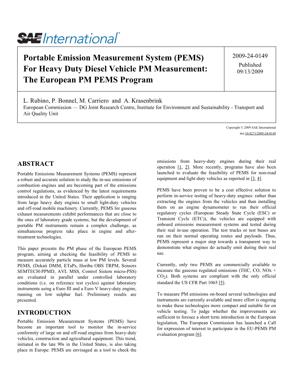 便携式排放测量系统(PEMS)已成为监测广大重型车辆、建筑和农业设备发动机排放测量的重要工具。这种趋势于90年代末后期在美国被发起,同样也发生在欧洲:PEMS被设想作为一种检测工具检测重型发动机在其实际运行期间的排放[1,2]。最近,还开展了一系列计划来评估[3,4]中报告的非道路移动机械和轻型车辆PEMS的可行性。