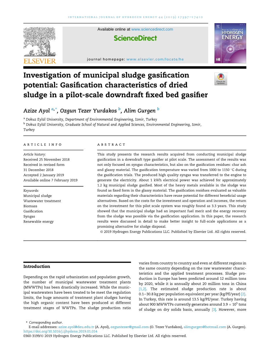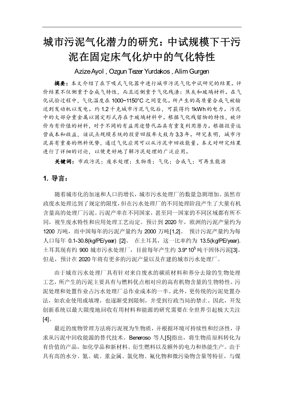 - 城市污泥气化潜力的研究:中试规模下干污 泥在固定床气化炉中的气化特性外文翻译资料