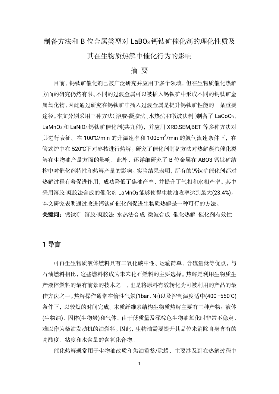- 制备方法和B位金属类型对LaBO3钙钛矿催化剂的理化性质及 其在生物质热解中催化行为的影响外文翻译资料