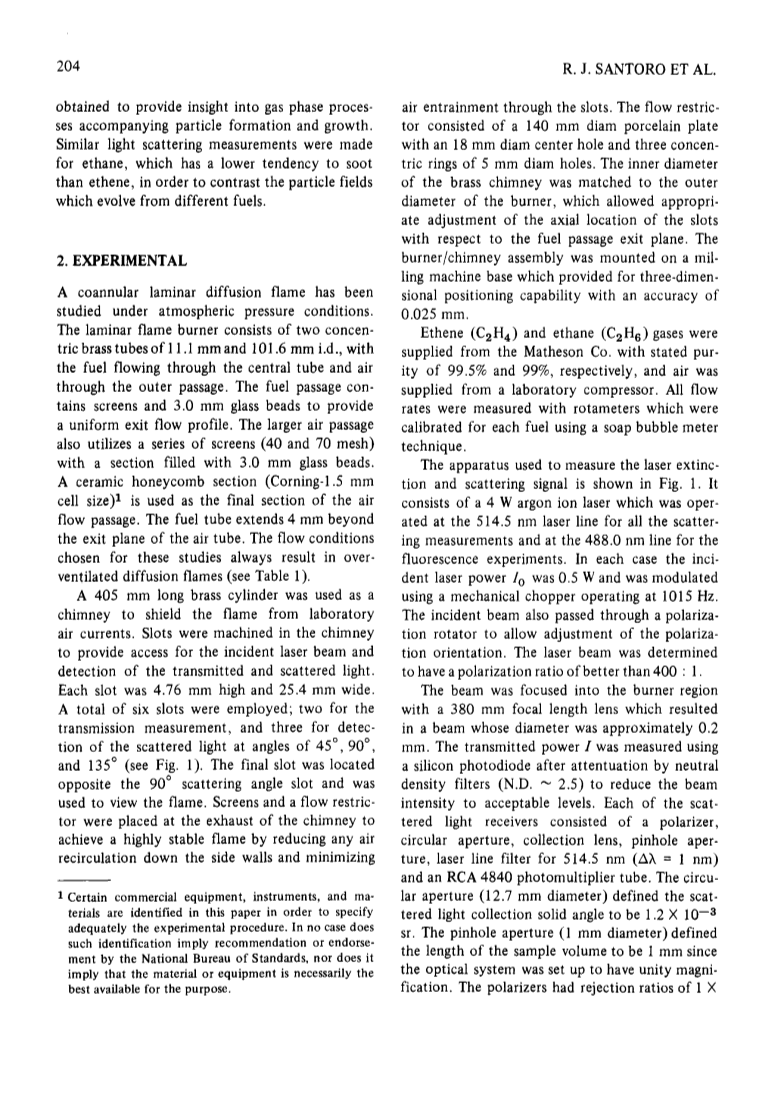 目前的工作包括激光光散射在层流coannular和灭绝的测量扩散火焰。测量取得了使用乙烯和乙烷作为燃料。为乙烯研究燃料流量也不尽相同火焰从nonsoot经历一个过渡排放烟尘排放条件。光散射测量被用来确定区域的粒子形成和增长在火焰中的位置的函数。测量获得的荧光和去极化率提供洞察气相过程伴随粒子形成和增长。类似的光散射测量对乙烷,降低烟尘的倾向比乙烯,为了对比粒子字段发展从不同的燃料。