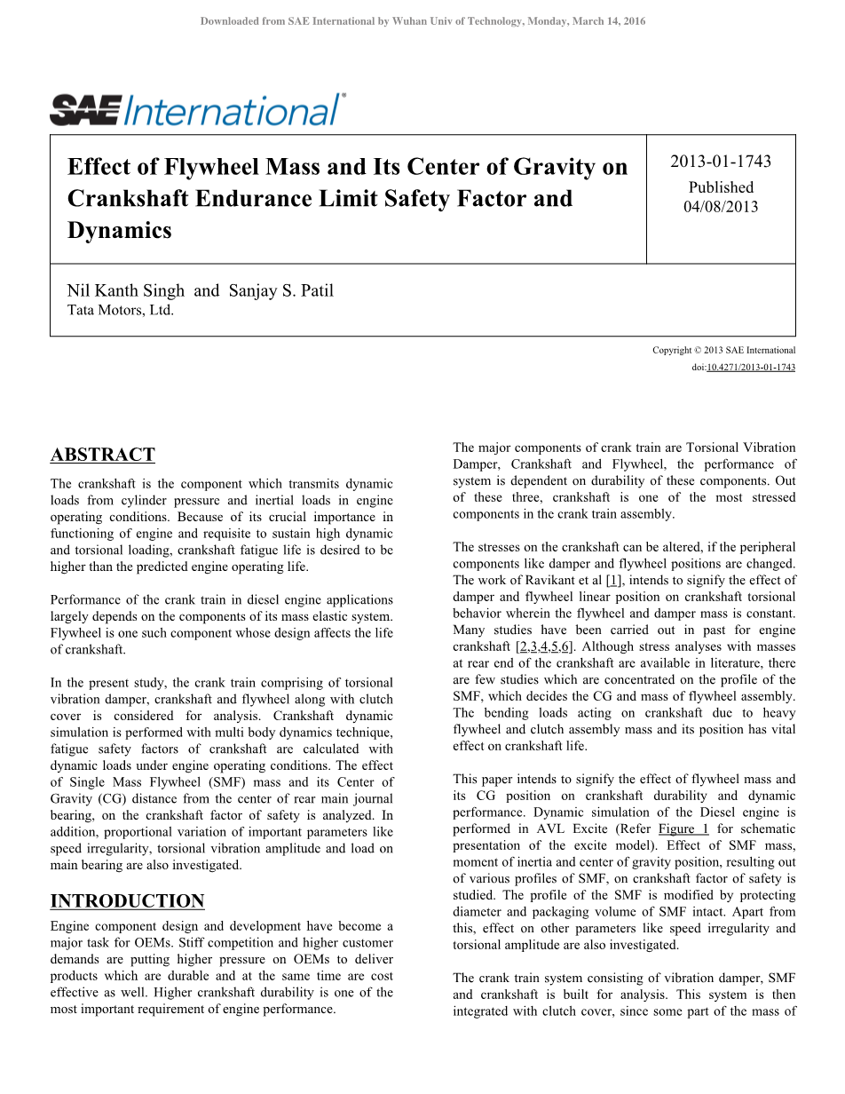 [1].Gawhade, R., Ghare, P., Satyanarayana, V., and Patade,V., “Effect of Positions of Front and Rear Masses in Crankshaft Design,” SAE Technical Paper 2011-28-0087,2011, doi:10.4271/2011-28-0087.