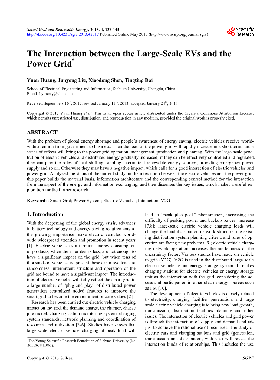 大规模电动汽车和电网之间的互动外文翻译资料 2023-01-14 13:45:18 英语原文共 7 页,剩余内容已隐藏,支付完成后下载完整资料 英语原文共 6 页,剩余内容已隐藏,支付完成后下载完整资料 资料编号:[153721],资料为PDF文档或Word文档,PDF文档可免费转换为Word 原文和译文剩余内容已隐藏,您需要先支付 30元 才能查看原文和译文全部内容!立即支付 发小红书推广免费获取该资料资格。点击链接进入获取推广文案即可: Ai一键组稿 | 降AI率 | 降重复率 | 论文一键排版 PREVIOUS NEXT 您可能感兴趣的文章 基于偏振特性的锂离子电池最优充电方法外文翻译资料 大规模电动汽车和电网之间的互动外文翻译资料 柴油混合动力客车动力系统仿真分析外文翻译资料 某型车用汽油机的总体设计及曲轴设计外文翻译资料 基于ansys的连杆设计优化外文翻译资料 飞轮质量及其重心位置对曲轴耐久极限安全系数的动力学影响外文翻译资料 二氧化碳作为添加物在乙烯扩散火焰中的化学作用对烟尘和氮氧化物生成的影响外文翻译资料 烟尘粒子扩散火焰的测量外文翻译资料