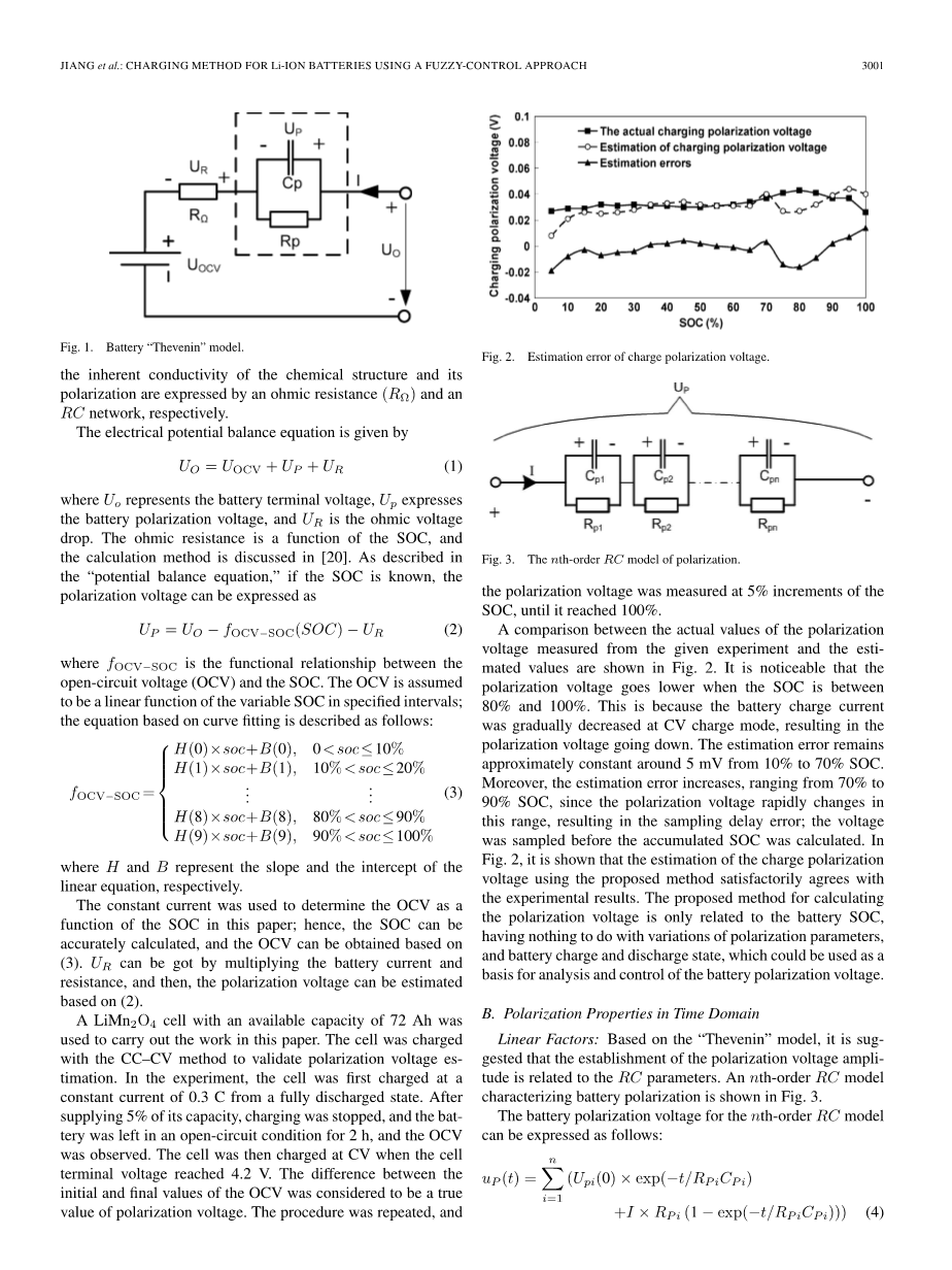 在本文中,恒定电流被用来确定开路电压作为SOC的功能;因此,SOC可以被准确地算出,开路电压建立在“Current-pumped battery charger,”基础上可以得出。UR可以通过将电池电流和电阻相乘得到,然后极化电压可以通过 “Multi-step constant-current charging method for an electric vehicle nickel/metal hydride battery with high-energy efficiency and long cycle life,”估计得到。