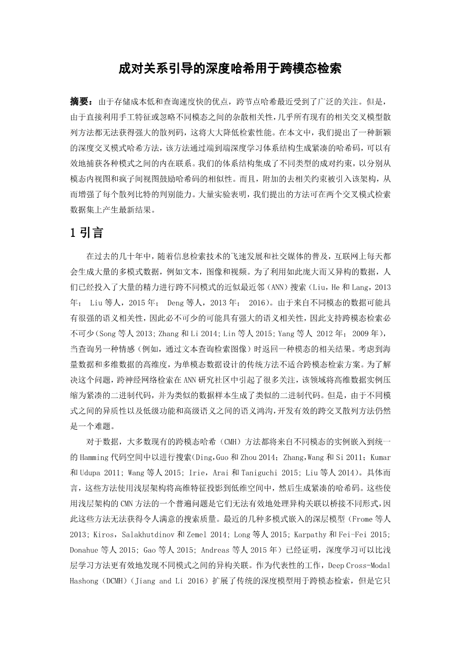 成对关系引导的深度哈希用于跨模态检索外文翻译资料 2022-08-10 15:47:52 英语原文共 8 页,剩余内容已隐藏,支付完成后下载完整资料 英语译文共 12 页,剩余内容已隐藏,支付完成后下载完整资料 资料编号:[238469],资料为PDF文档或Word文档,PDF文档可免费转换为Word 原文和译文剩余内容已隐藏,您需要先支付 30元 才能查看原文和译文全部内容!立即支付 发小红书推广免费获取该资料资格。点击链接进入获取推广文案即可: Ai一键组稿 | 降AI率 | 降重复率 | 论文一键排版 PREVIOUS NEXT 您可能感兴趣的文章 基于GEP的函数关系对热带河流中沉积物的运输研究外文翻译资料 基于独立分量分析的人脸识别外文翻译资料 信息论的私有信息检索的一般构造外文翻译资料 关于有限元问题几何多重网格求解器的高级实现:大气建模中的应用外文翻译资料 位可伸缩的深度哈希与正则相似学习的图像检索和人的重新识别外文翻译资料 最大化双层网络的同步性外文翻译资料 用遗传算法求解机场停机位分配问题外文翻译资料 基于CT扫描技术的多孔沥青路面吸声系数模型研究外文翻译资料 基于张量投票的分数阶图像去噪模型及其数值算法外文翻译资料 鲁棒的图正则化非监督特征选择外文翻译资料