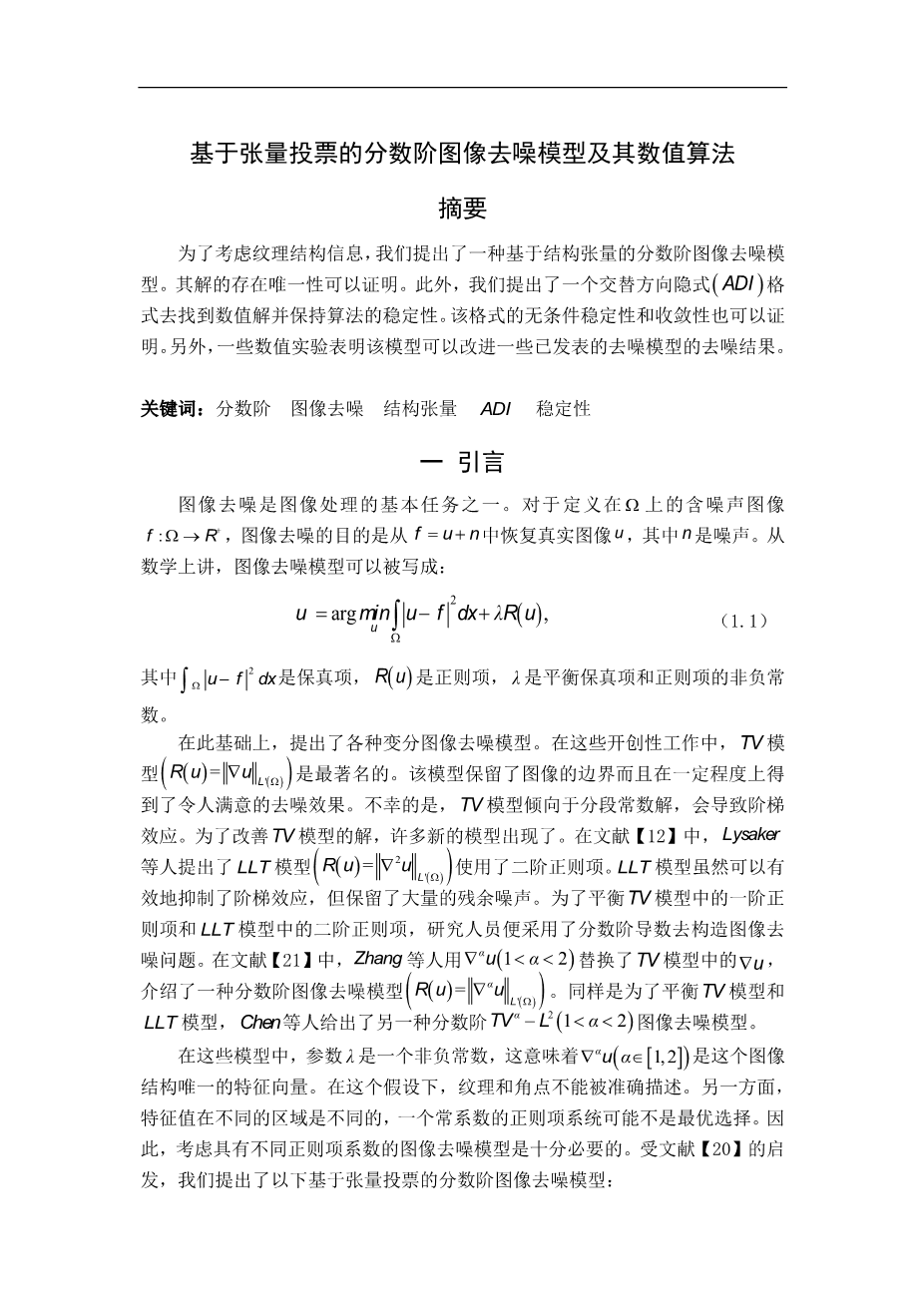 基于张量投票的分数阶图像去噪模型及其数值算法外文翻译资料