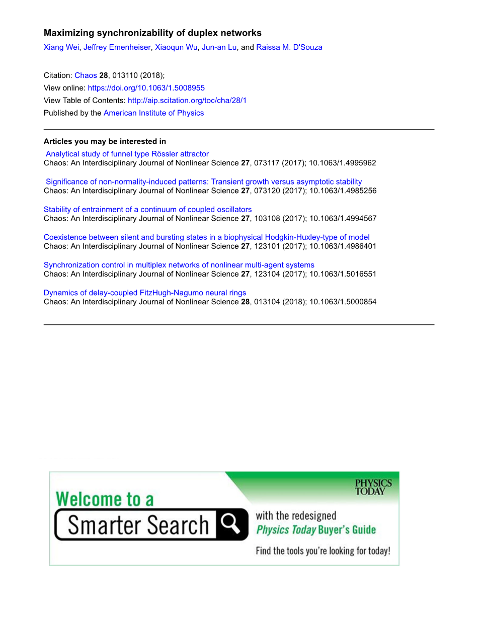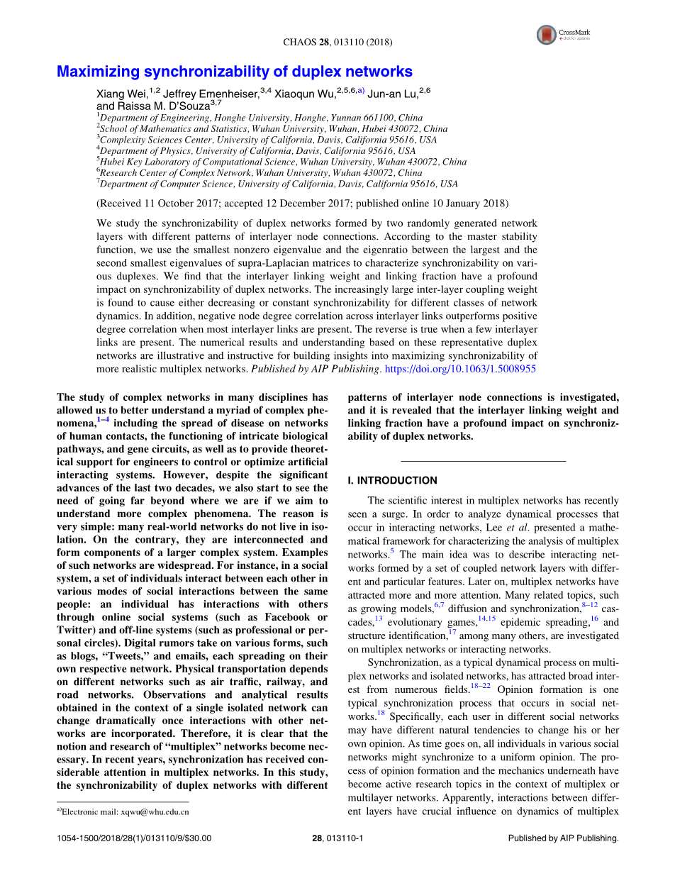 Xiang Wei, Jeffrey Emenheiser, Xiaoqun Wu, Jun-an Lu and Raissa M. Drsquo;Souza