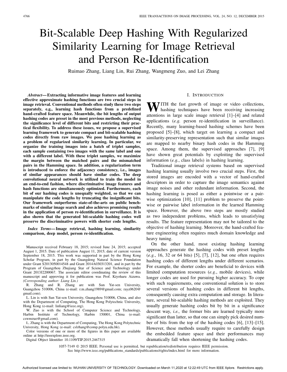 位可伸缩的深度哈希与正则相似学习的图像检索和人的重新识别外文翻译资料