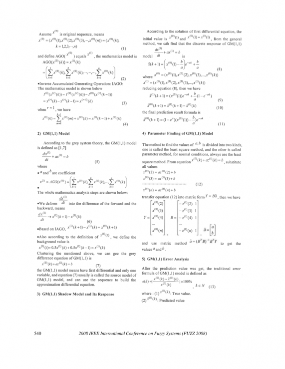 GM(1,1)模型意味着该模型具有一阶差分且仅具有一个变量,并且等式(7)通常被称为GM(1,1)的源模型,并且可以使用该序列来建立一个近似微分方程。