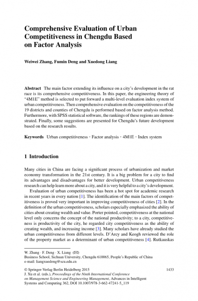 首先,本文采用“4M1E”法提出了一个多层次的评价指标体系。然后将因子分析法应用于成都市的实证分析,对指标体系进行定量分析,得出一些可能的结论。