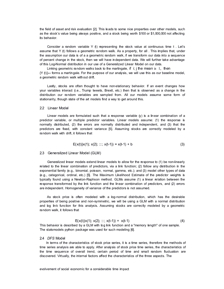 最后,股票往往被认为具有非平稳的行为。我们的随机变量是从中抽取的,如果一个事件改变了变量相互作用,则将其视为分布的变化。不过,我们所有的模型都假设了某种形式的平稳性,以便我们寻找一种最先进的模型来解决这个问题。