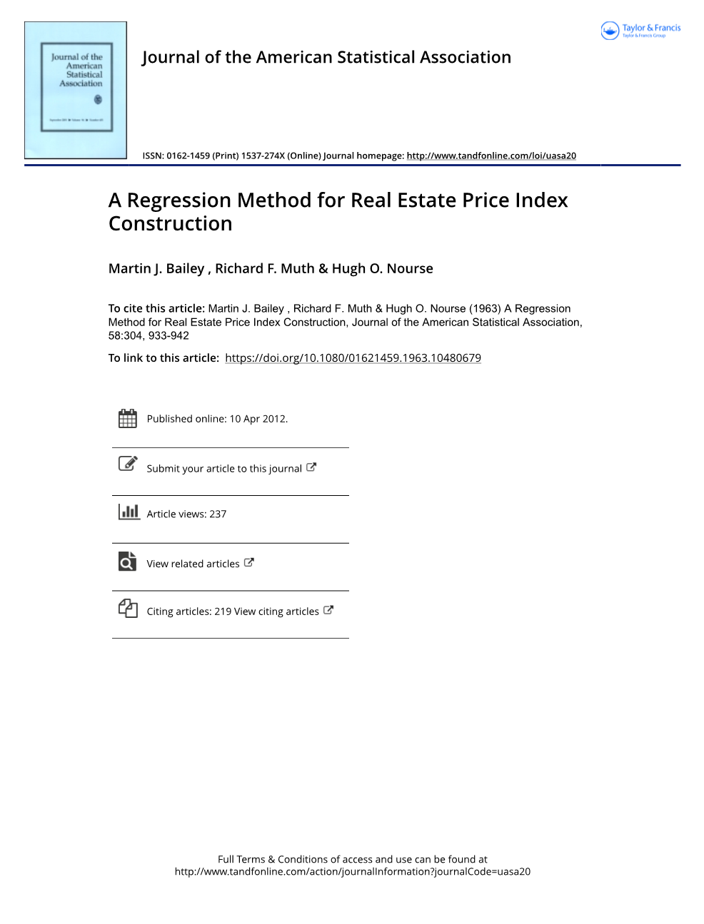 刚才讨论的链式方法虽然在计算上很简单, 但它效率低下,因为它忽略了价格亲属中在后期的最终价格中所包含的早期的指数信息。此外,计算估计指数的标准误差可能相当困难,而且对影响特定属性指数的其他变化因素的估计是十分困难的。 在本文中,为了避免上述苦难,我们将讨论一种结合价格亲属并基于特定属性的重复交易价格的回归方法。