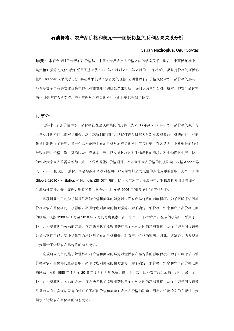 美元加息与某大宗商品价格走势相关性分析外文翻译资料 2022-07-17 14:32:56 英语原文共 7 页,剩余内容已隐藏,支付完成后下载完整资料 英语原文共 13 页,剩余内容已隐藏,支付完成后下载完整资料资料编号:[9277],资料为PDF文档或Word文档,PDF文档可免费转换为Word 原文和译文剩余内容已隐藏,您需要先支付 30元 才能查看原文和译文全部内容!立即支付 发小红书推广免费获取该资料资格。点击链接进入获取推广文案即可: Ai一键组稿 | 降AI率 | 降重复率 | 论文一键排版 PREVIOUS NEXT 您可能感兴趣的文章 基于一个幂GARCH模型对黄金市场的研究外文翻译资料 主成分分析教程外文翻译资料 逐步回归的显著性检验外文翻译资料 大数据挖掘:回顾外文翻译资料 DSSAE-BBOA:基于深度学习的气象大数据分析和可视化外文翻译资料 使用G或K点模式空间统计的统计推断外文翻译资料 李代数的扩张结构外文翻译资料 灾民居住偏好转变:以2016年日本熊本地震后益城三波面板数据为例外文翻译资料 影响印尼证券交易所投资的因素-增进对资本市场的了解外文翻译资料 基于JMP的教育数据挖掘外文翻译资料