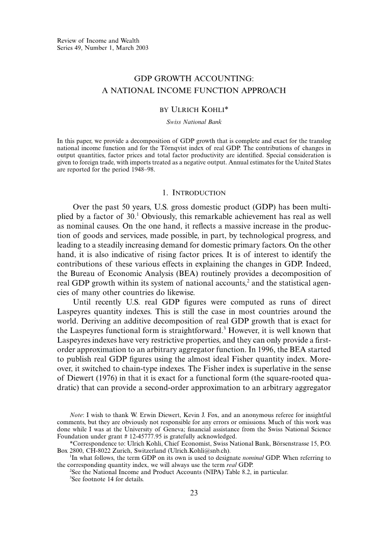 在本文中,我们提供GDP增长的分解,对于跨国家国民收入函数和Touml;rnqvist指数的实际GDP是完全和准确的。确定产出量,要素价格和全要素生产率变化的贡献。 特别考虑对外贸易,将进口作为负产出。 美国的年度估计报告为1948-98年。
