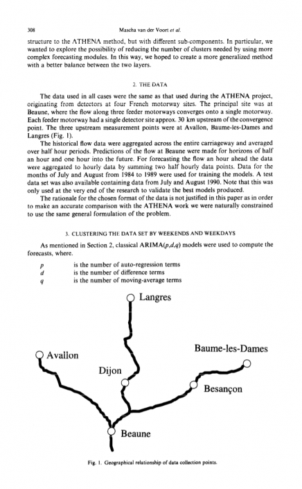 所有案例中使用的数据与ATHENA项目中使用的数据相同,源自法国四个高速公路站点的探测器。主要地点位于博纳(Beaune),三条支线高速公路沿着高速公路汇合。 每个支线高速公路都有一个探测器位置。 汇聚点上游30公里。 三个上游测量点位于Avallon,Baume-les-Dames和Langres(图1)。