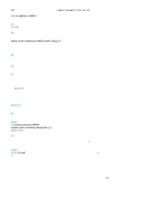 最近,用混合模型来克服基于GARCH模型限制的提出,使人们越来越关注金融数据波动的可预测性。例如,Tseng等人[24]将灰色预测模型与GARCH模型相结合,作为提高GARCH模型波动率预测能力的手段,以预测日经225指数(日本)和富时100指数(英国)的波动性,结果表明该模型可以提高传统GARCH模型的波动率预测能力;Hung [25]将模糊系统与GARCH模型结合起来预测包括DAX30(德国),多伦多SE300(加拿大),纳斯达克综合指数(美国)和日经225(日本)在内的多种金融市场的波动性。此外,遗传算法也被用来对模糊GARCH模型进行参数估计,通过与历史波动率的比较,仿真结果表明该方法优于标准GARCH过程;Hajizadeh等人提出了一种基于EGARCH和人工神经网络(ANN)的混合模型来预测标准普尔500指数的波动性[20],EGARCH- ANN模型以EGARCH预测波动序列和一组假设与标普500价格指数相关的解释变量为输入,然后将混合模型得到的预测波动率序列与EGARCH模型的历史波动率接近程度进行比较,得到的结果表明提出的混合EGARCH- ANN模型能够更好地预测波动率;Bildirici和Ersin [26]在他们的研究中将不同类别的GARCH族模型与ANN结合起来预测伊斯坦布尔证券交易所的波动性,他们发现GARCH模型的ANN扩展版本改进了各个GARCH族模型的预测结果,其中ANN与非对称GARCH模型(APGARCH)的组合表现最佳;最近,Kristjanpoller等人[27]使用混合ANN-GARCH模型来预测巴西BOVESPA、智利IPSA和墨西哥IPyC三个不同的拉丁美洲新兴股票市场的波动性,将预测值与历史波动率进行比较,发现ANN模型提高了GARCH模型的预测性能,此外,ANN-GARCH结果对于不同的ANN参数和波动率度量是稳健且一致的。