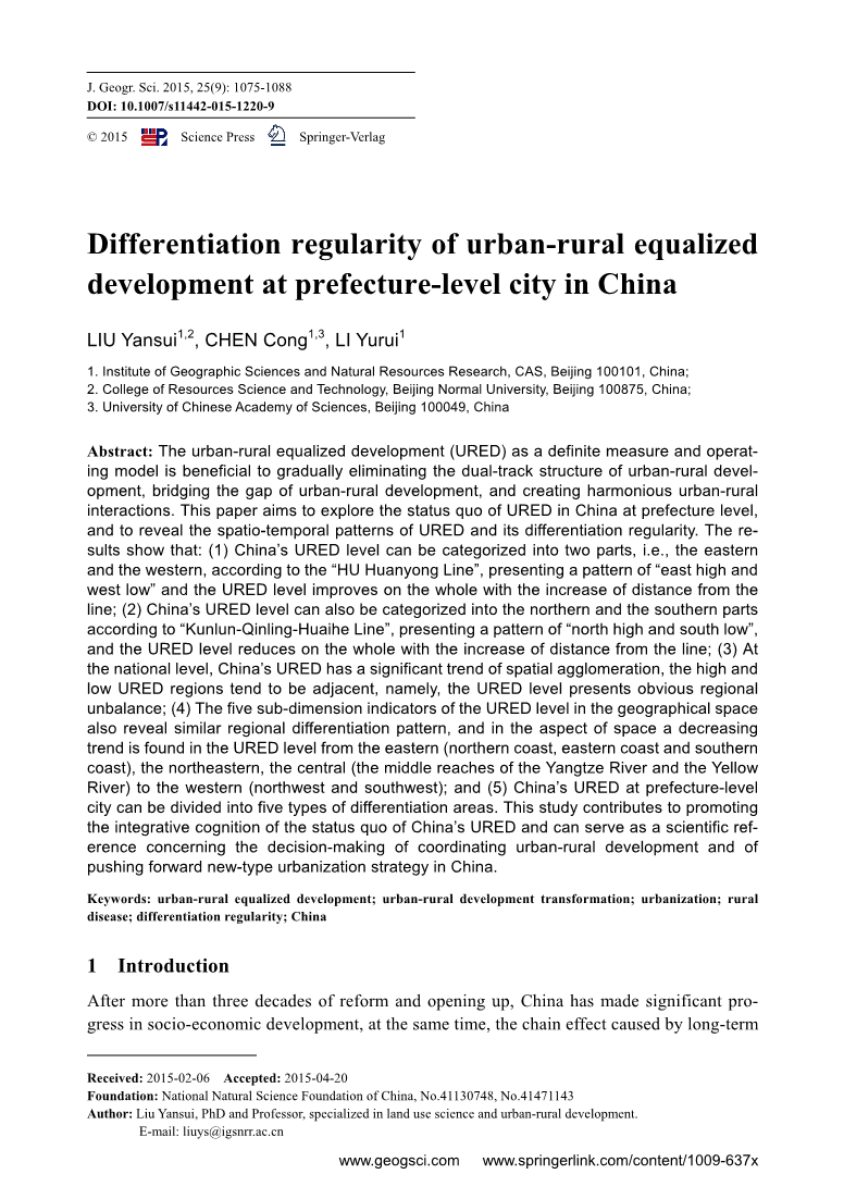 经过三十多年的改革开放,中国在社会经济发展方面取得了重大进展,同时,长期贫困对农业和农村地区产生的连锁效应在工业化和城市化的快速发展过程中日益突出。由于快速城市化导致的“农村疾病”日益恶化,城乡分割、土地分割和人地分离的弊端越来越多,教育、医疗和养老金的供应短缺日益恶化,这全面导致了城乡协调发展和农村经济可持续发展的困难。自中共十八届三中全会以来,中国经济进入了新常态,经济发展方式的转变和城乡发展的转变势在必行。可以为中国转型期城乡协调发展决策提供理论依据的创新认知理论和搜索优化策略迫在眉睫。1988年,赛德尔基金会选择山东省南张楼村推进城乡均衡发展(URED)试验,创造了中国的“南张楼模式”。URED的价值不仅在于突出协调了“工业援助农业、城市支持农村”的城乡发展政策,而且体现了美丽乡村建设的一般要求:生态工业,环境优美,富裕的生活和文明的地方习俗。为满足城乡建设和城乡一体化发展的需要,着眼于城乡地理系统的全球性,综合性和区域性,研究URED问题是应对区域发展理论和城乡统筹发展实践的客观需要。这对于建立农村发展的长效机制,加深对新城镇建设地理的认识,完善城乡发展理论也是有益的。
