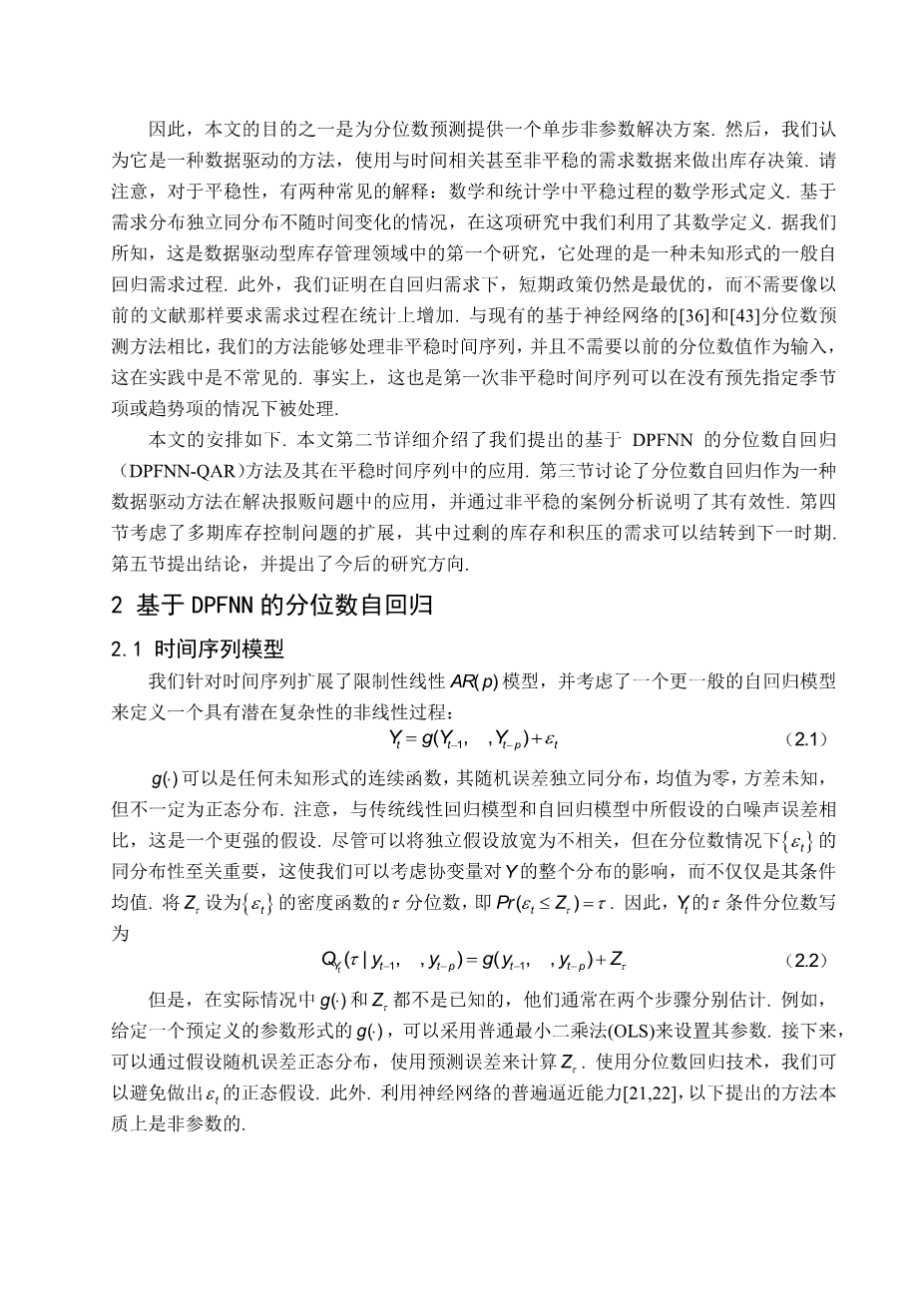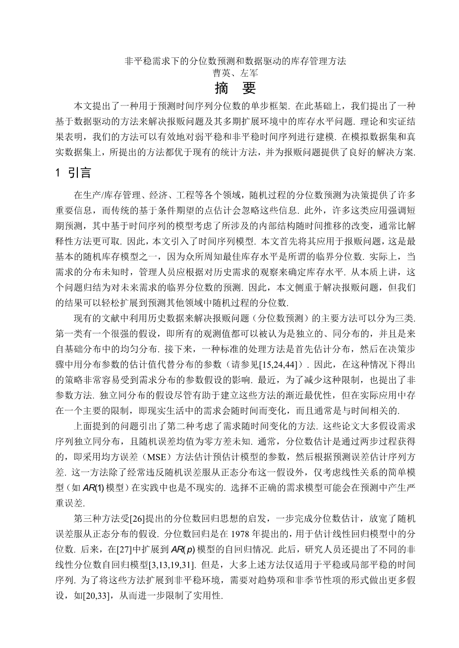 非平稳需求下的分位数预测和数据驱动的库存管理方法外文翻译资料