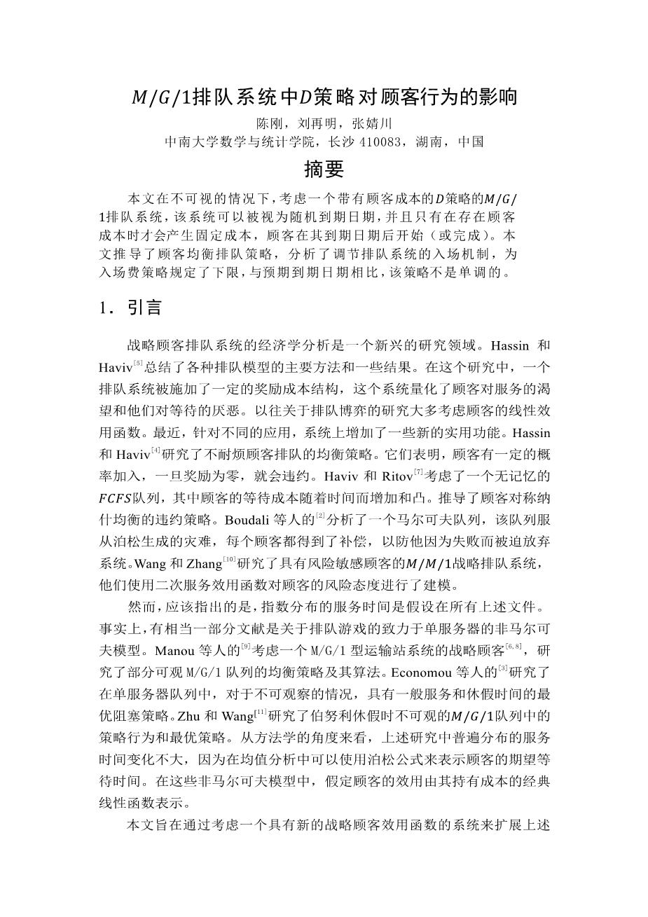 M/G/1排队系统中D策略对顾客行为的影响外文翻译资料 2022-08-09 16:44:57 英语原文共 5 页,剩余内容已隐藏,支付完成后下载完整资料 英语译文共 11 页,剩余内容已隐藏,支付完成后下载完整资料 资料编号:[238816],资料为PDF文档或Word文档,PDF文档可免费转换为Word 原文和译文剩余内容已隐藏,您需要先支付 30元 才能查看原文和译文全部内容!立即支付 发小红书推广免费获取该资料资格。点击链接进入获取推广文案即可: Ai一键组稿 | 降AI率 | 降重复率 | 论文一键排版 PREVIOUS NEXT 您可能感兴趣的文章 基于一个幂GARCH模型对黄金市场的研究外文翻译资料 主成分分析教程外文翻译资料 逐步回归的显著性检验外文翻译资料 大数据挖掘:回顾外文翻译资料 DSSAE-BBOA:基于深度学习的气象大数据分析和可视化外文翻译资料 使用G或K点模式空间统计的统计推断外文翻译资料 李代数的扩张结构外文翻译资料 灾民居住偏好转变:以2016年日本熊本地震后益城三波面板数据为例外文翻译资料 影响印尼证券交易所投资的因素-增进对资本市场的了解外文翻译资料 基于JMP的教育数据挖掘外文翻译资料