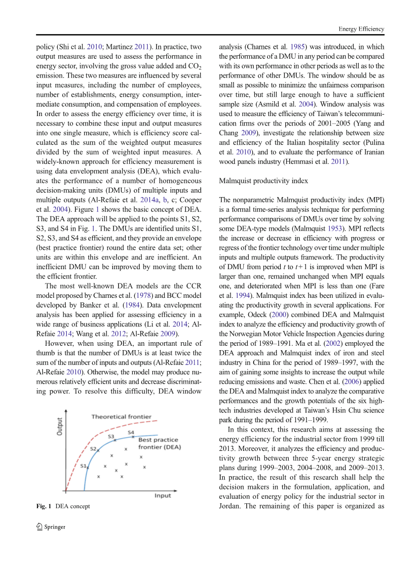 最著名的DEA模型是Charnes等人提出的CCR模型。(1978)和Banker等人提出的BCC模型。(1984)。数据包络分析已在广泛的商业应用中被用于评估效率(Li等人)。2014;Al - Refaie 2014;王等。2012;Al-Refaie 2009)。