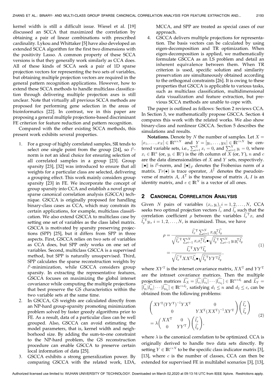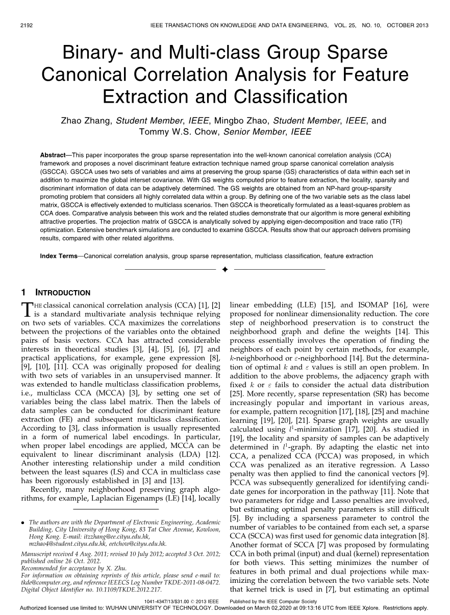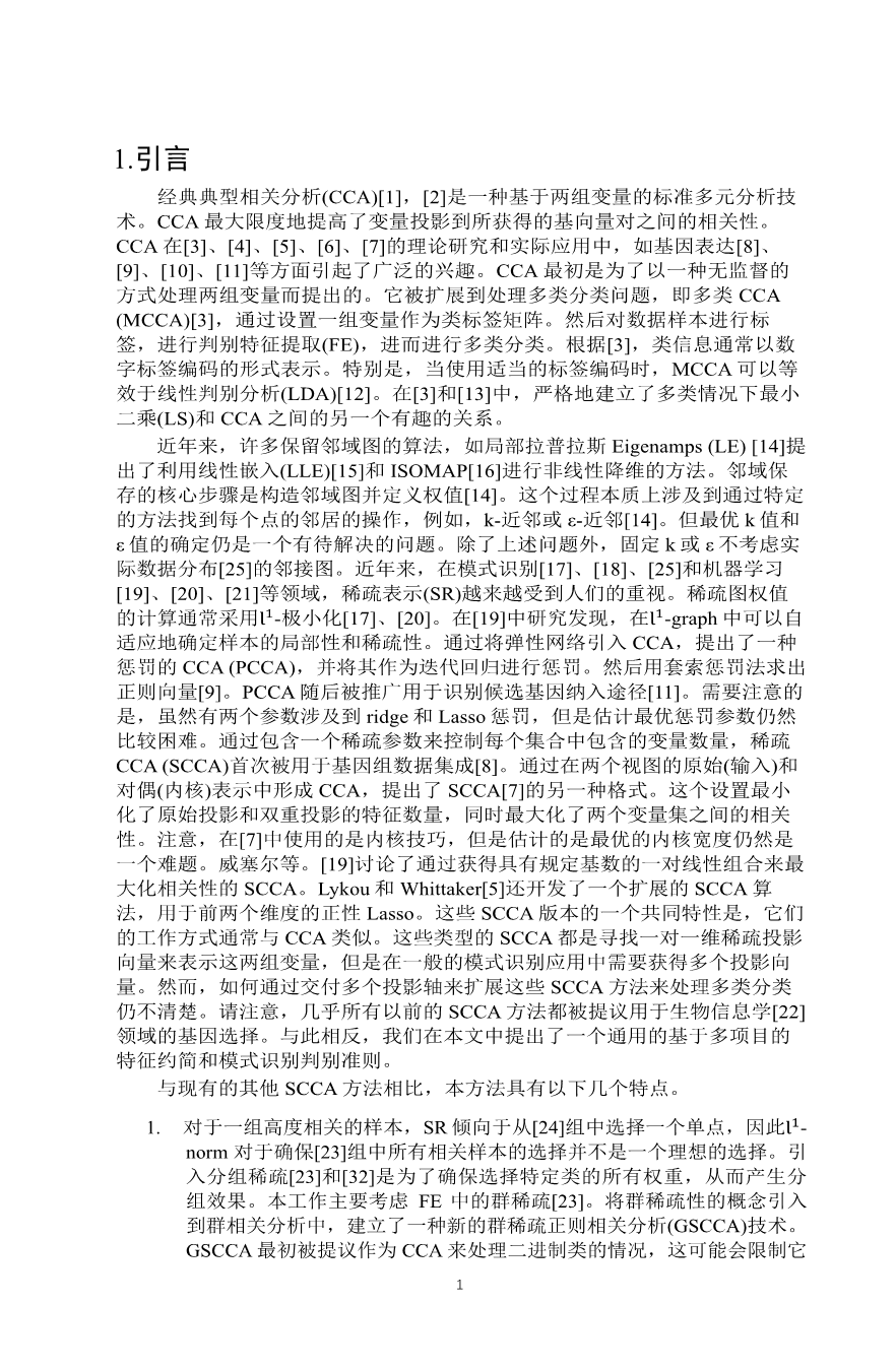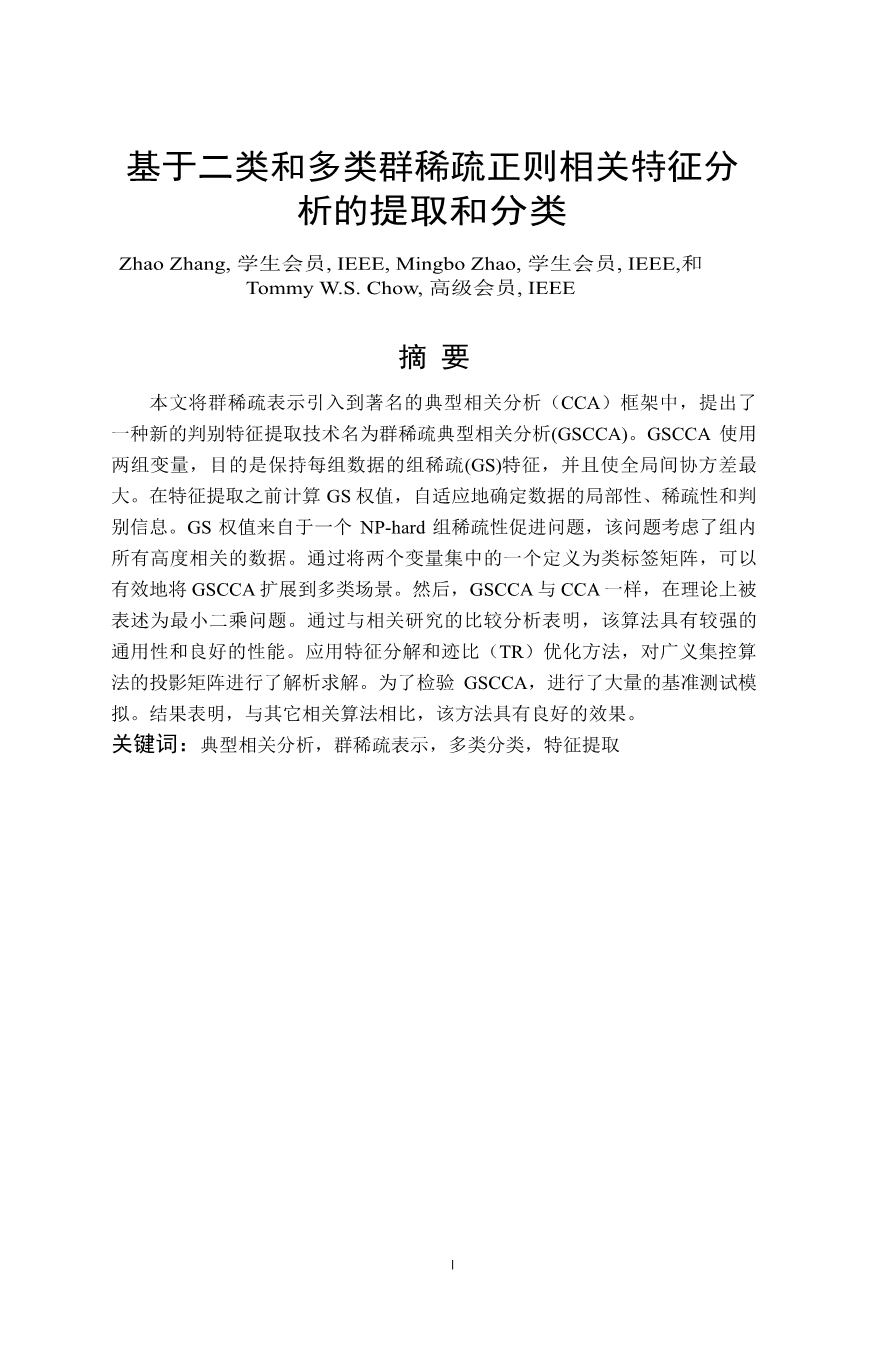 基于二类和多类群稀疏正则相关特征分 析的提取和分类外文翻译资料
