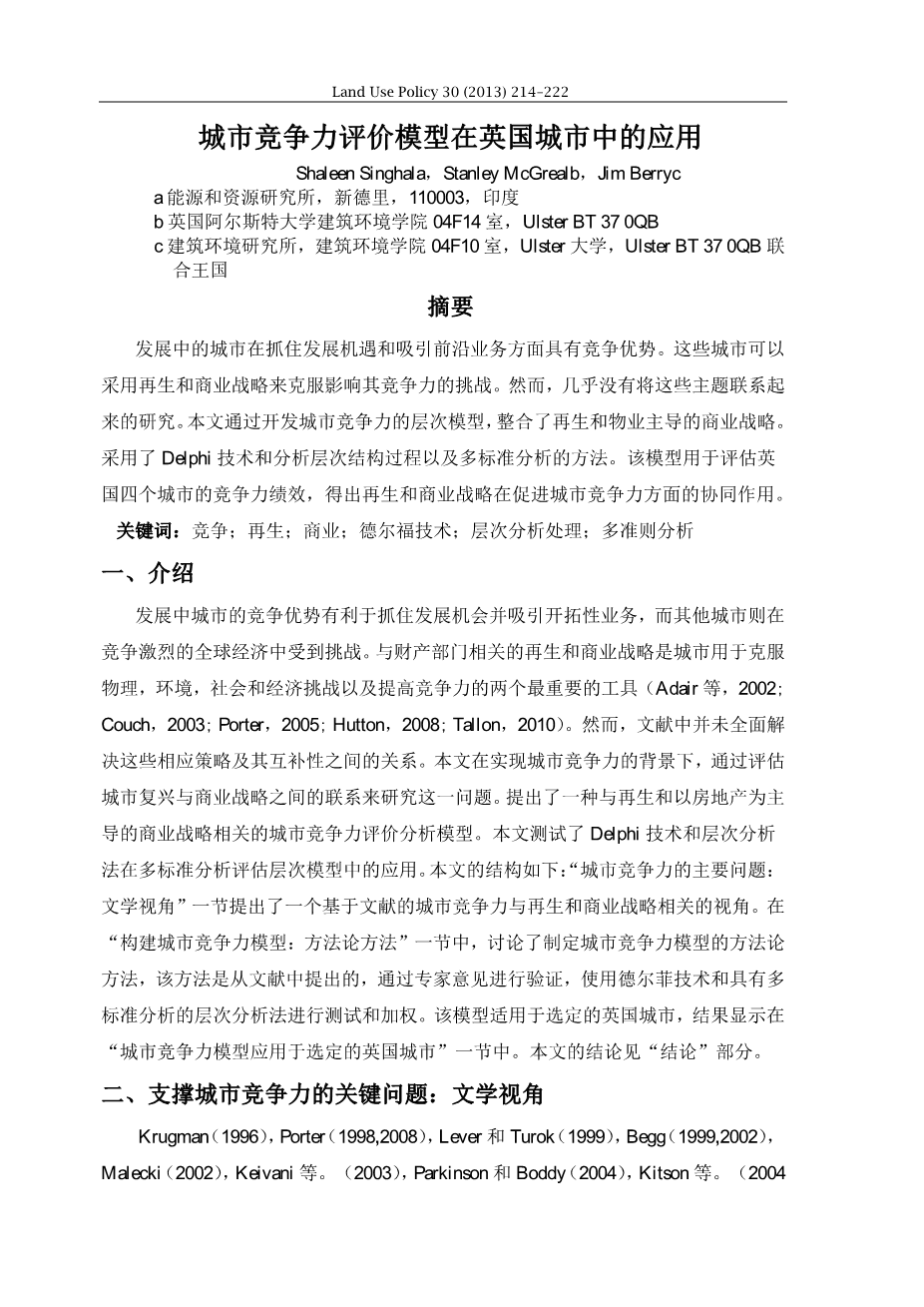 武汉城市圈城市竞争力的综合评价外文翻译资料